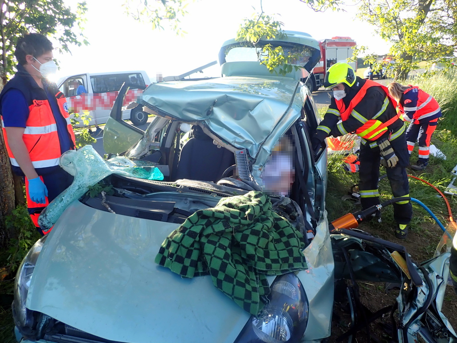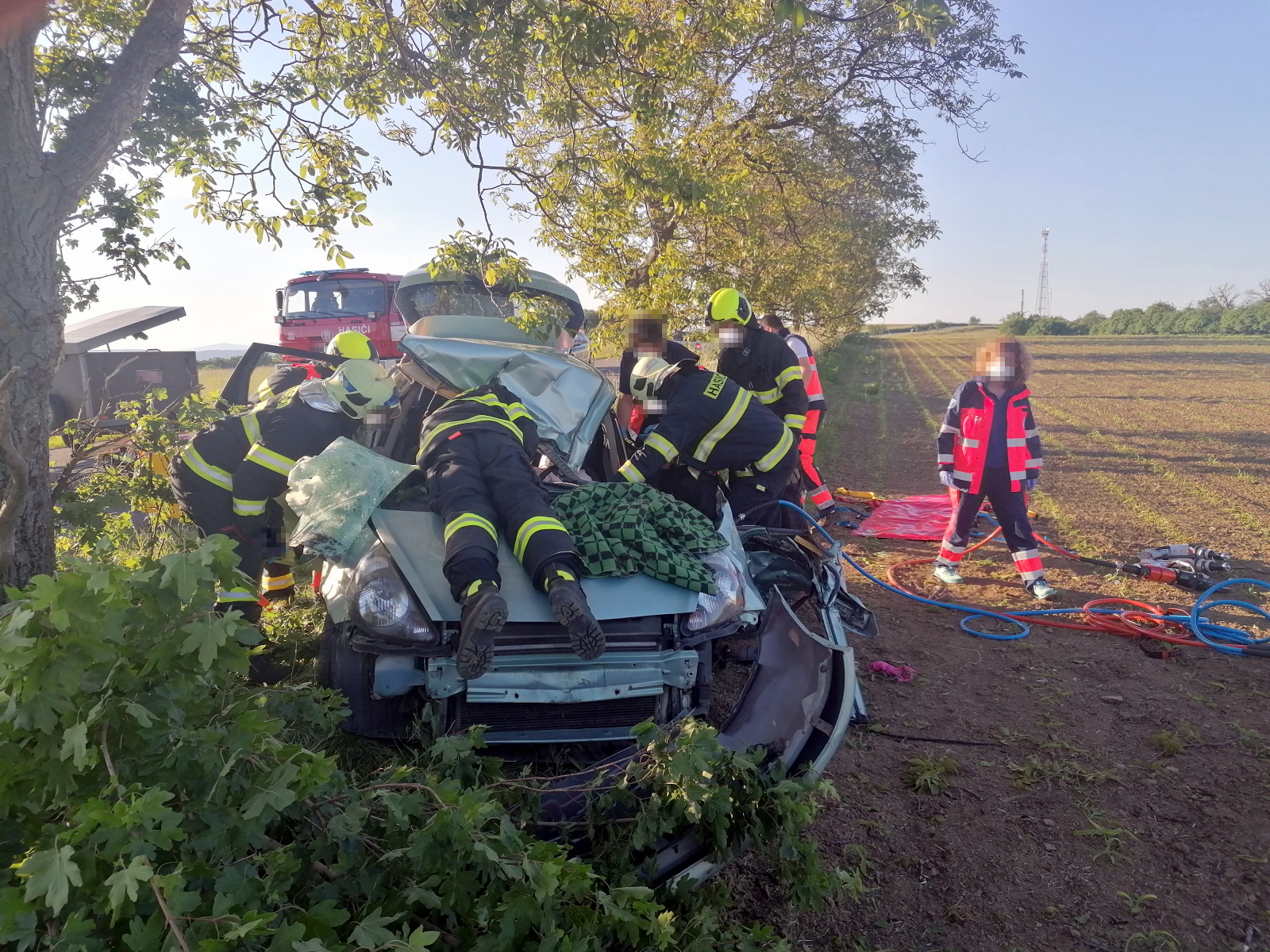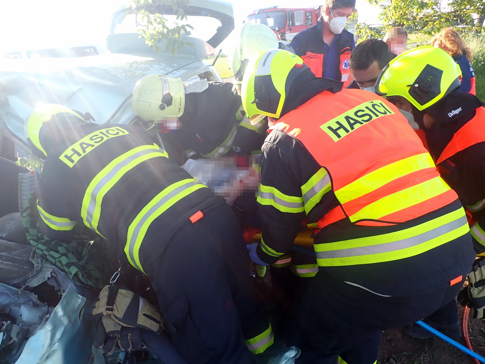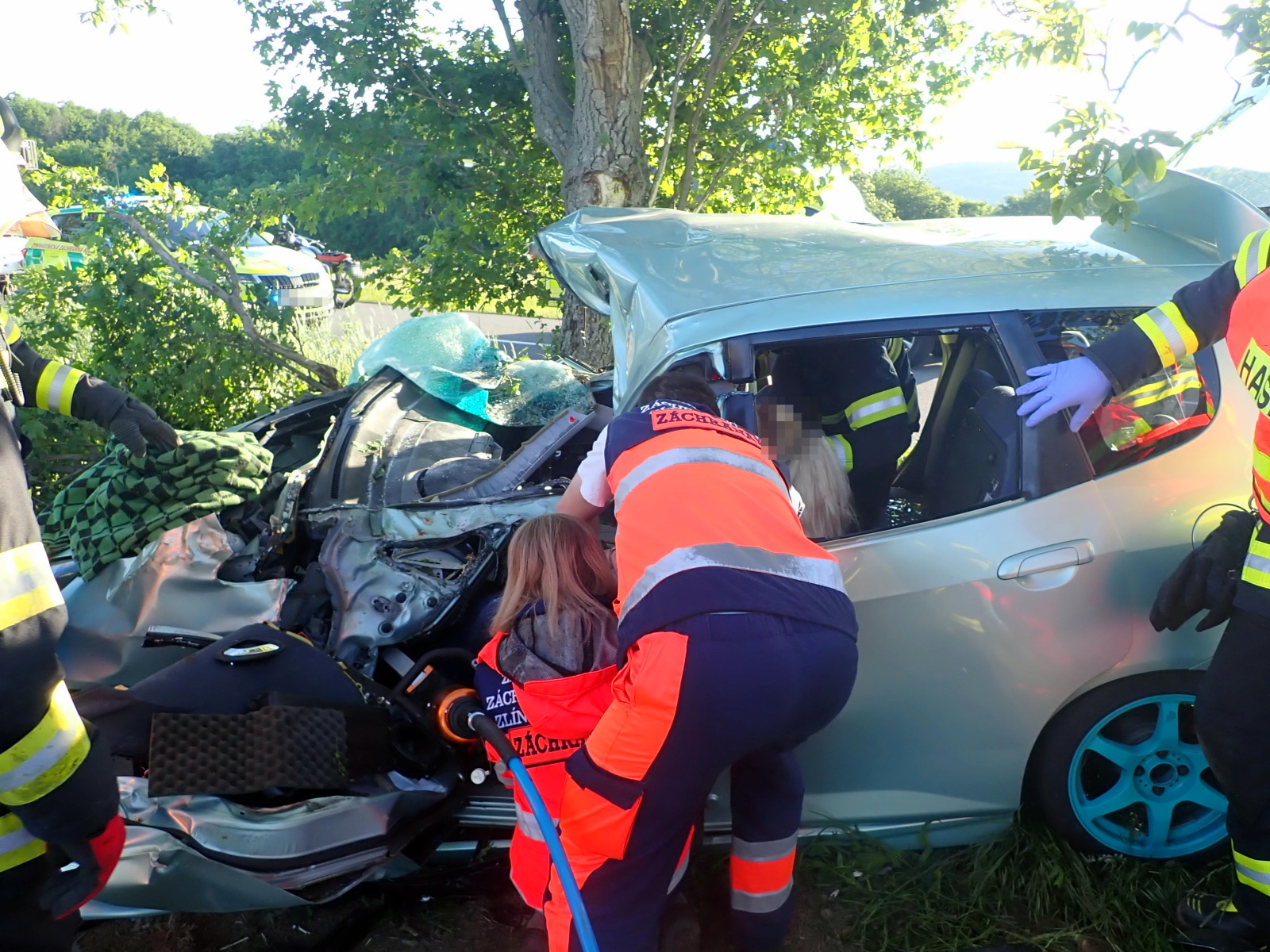 Hasiči okamžitě zajistili místo nehody a ve spolupráci se zdravotnickou záchrannou službou provedli její vyproštění pomocí speciálního hydraulického zařízení. Na páteřové desce pak byla z vraku vozu vytažena, předána do péče záchranářů a odvezena k dalšímu ošetření do nemocnice.