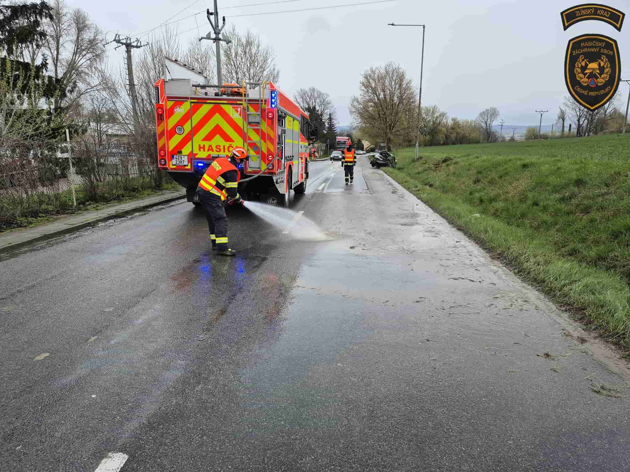 Po příjezdu profesionálních hasičů z Uherského Hradiště byli dva cestující již v péči zdravotnické záchranné služby. Hasiči vyprostili posledního člena posádky z havarovaného vozidla a předali jej k dalšímu ošetření. Současně zajistili protipožární opatření, zabránili pohybu vozidla a ošetřili uniklé provozní kapaliny.