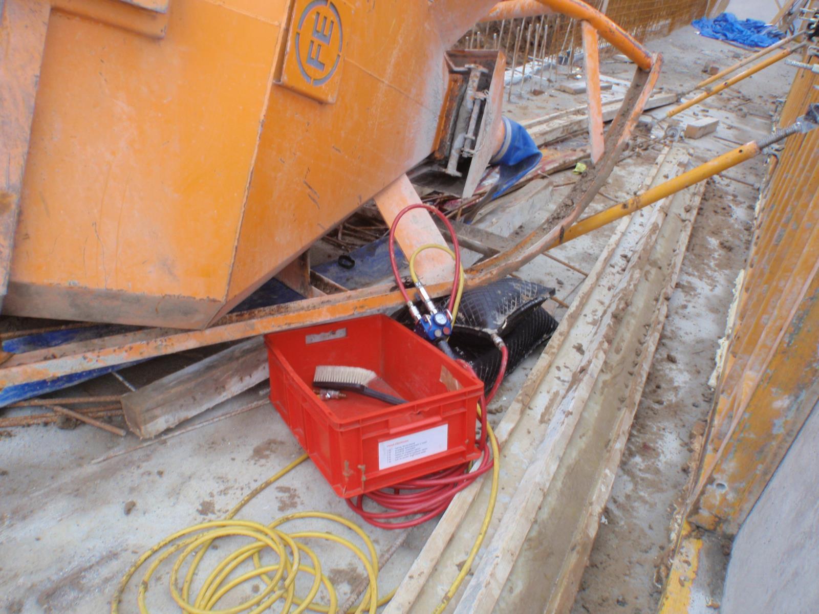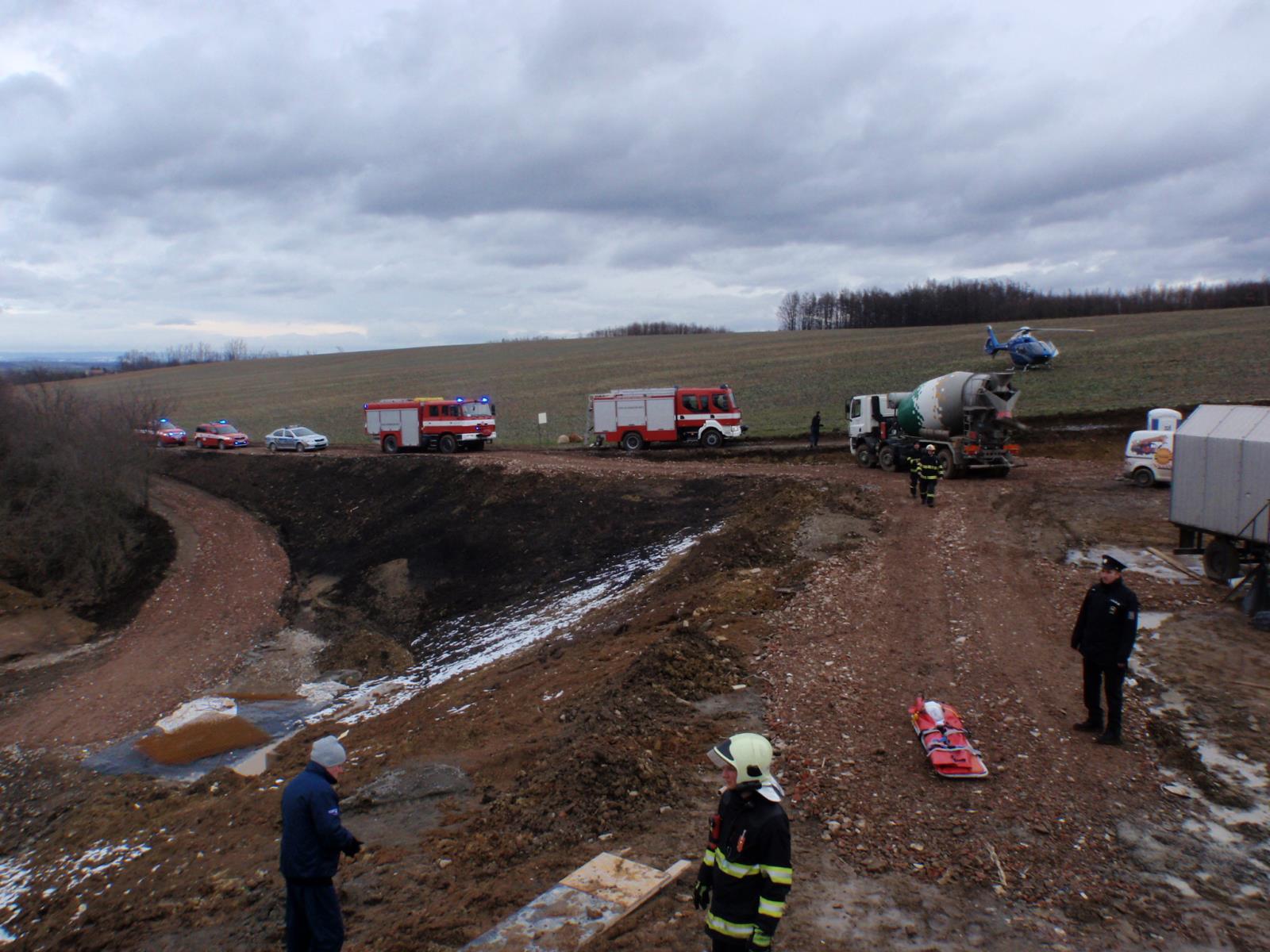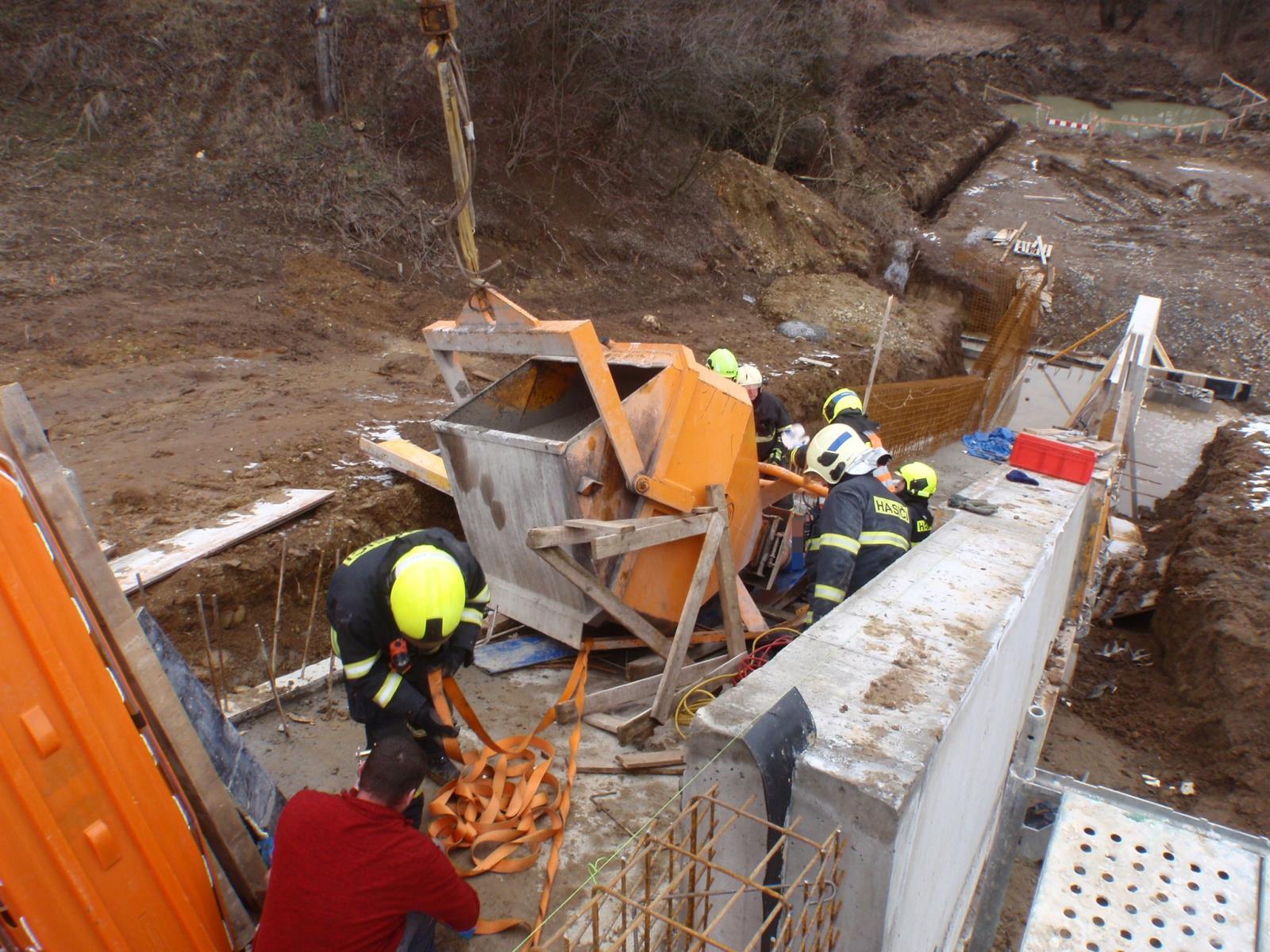 Po příjezdu jednotky na místo události provedli hasiči průzkum místa. Zjistili, že zde na dělníka spadl zásobník na beton, který visel na jeřábu a uvěznil mu spodní část těla pod zásobníkem. Na místě se již nacházeli záchranáři, kteří muže ošetřovali, a byla přivolána letecká záchranná služba.
