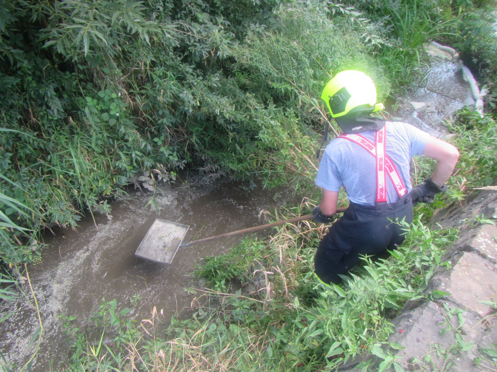 Znečištění potoka olejem ze závodního speciálu při Barum rallye hasiči zabránili