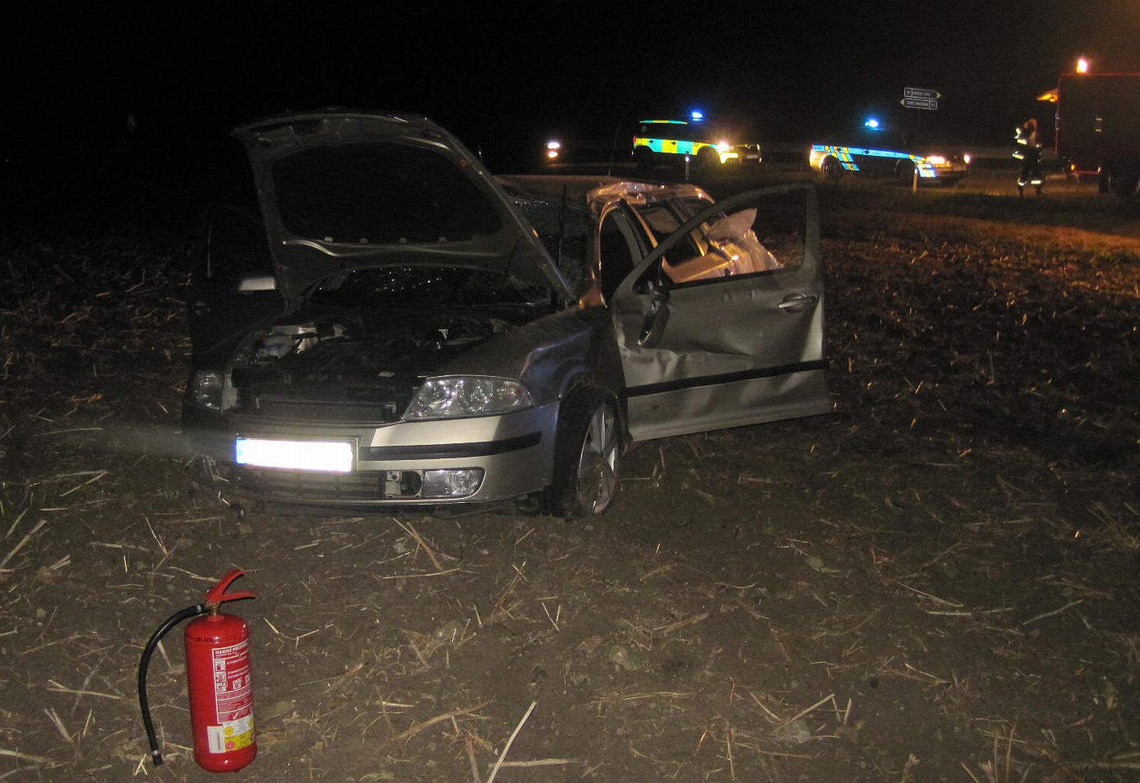 Včera, 17.8. 2017, v 23:12 hodin dorazila jednotka profesionálních hasičů ze stanice Uherský Brod na  místo hlášené dopravní nehody osobního vozidla zn. Škoda Octavia, ke které došlo u obce Bánov. Havarované osobní vozidlo stálo na poli několik metrů od křižovatky silnic.
