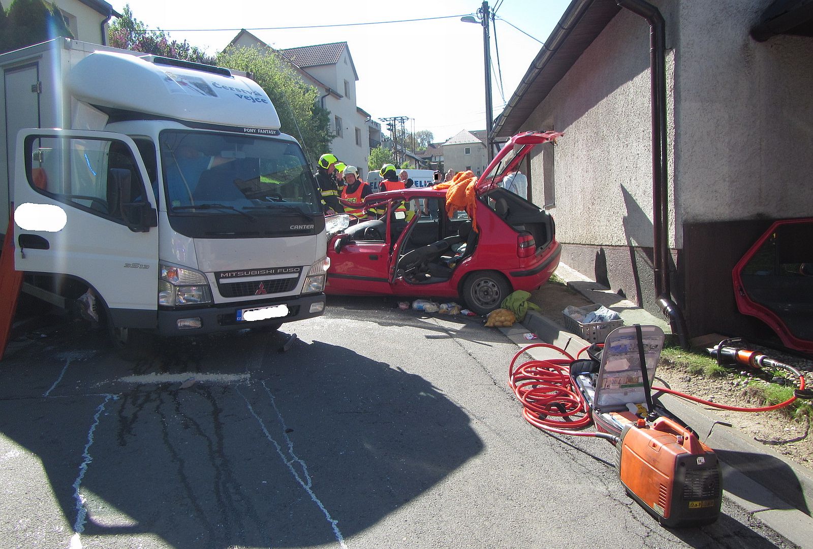 Hned po příjezdu poskytli hasiči zraněnému a zaklíněnému řidiči osobního vozidla předlékařskou pomoc a zafixovali jeho krční páteř. Pomocí hydraulických vyprošťovacích zařízení pak odstranili sloupek karoserie mezi dveřmi řidiče a zadního spolujezdce, odtrhli zadní dveře a vytvořil prostor pro přístup ke zraněnému a pro jeho vytažení. Při vyprošťování byl zraněný v péči záchranářů, kteří na místo dorazili hned za hasiči.