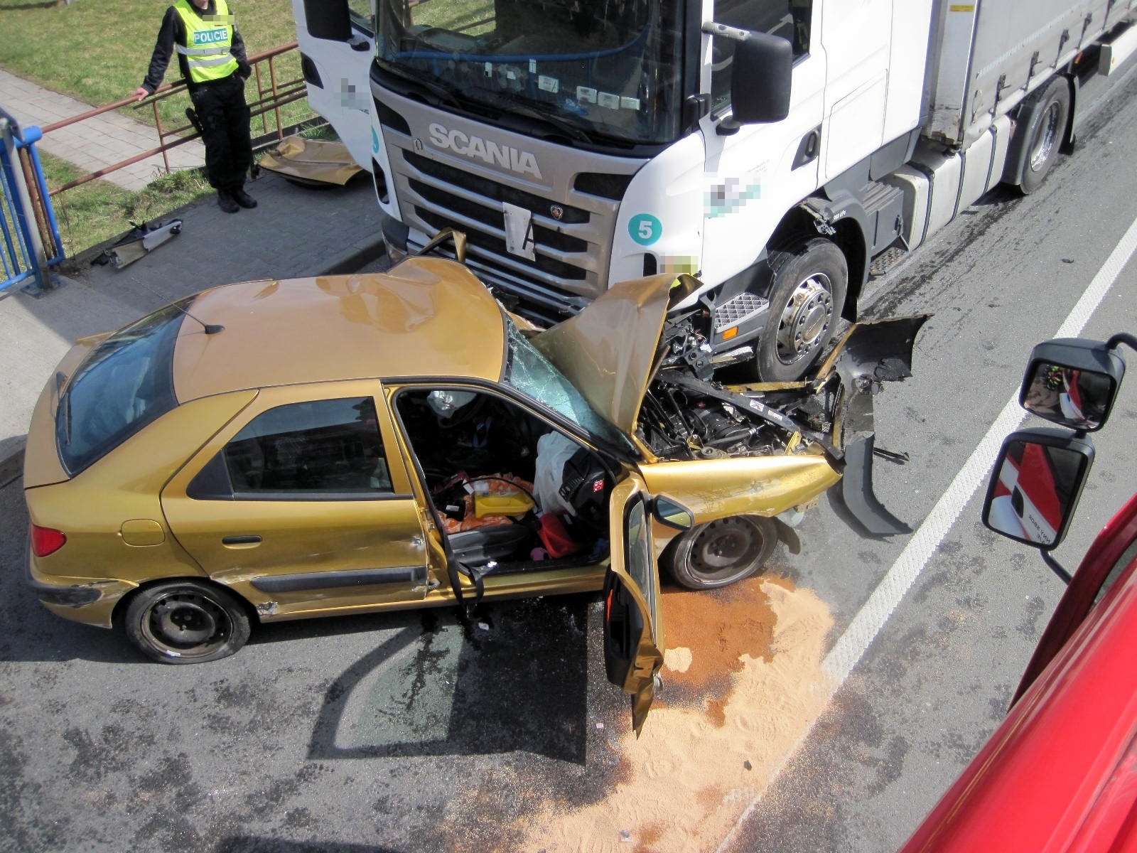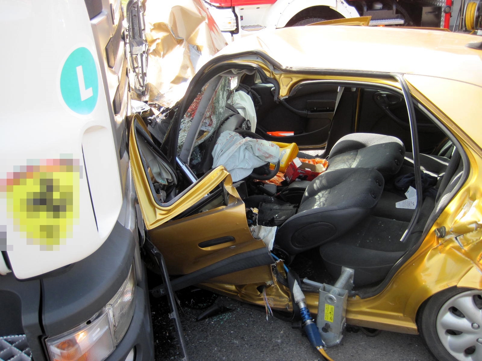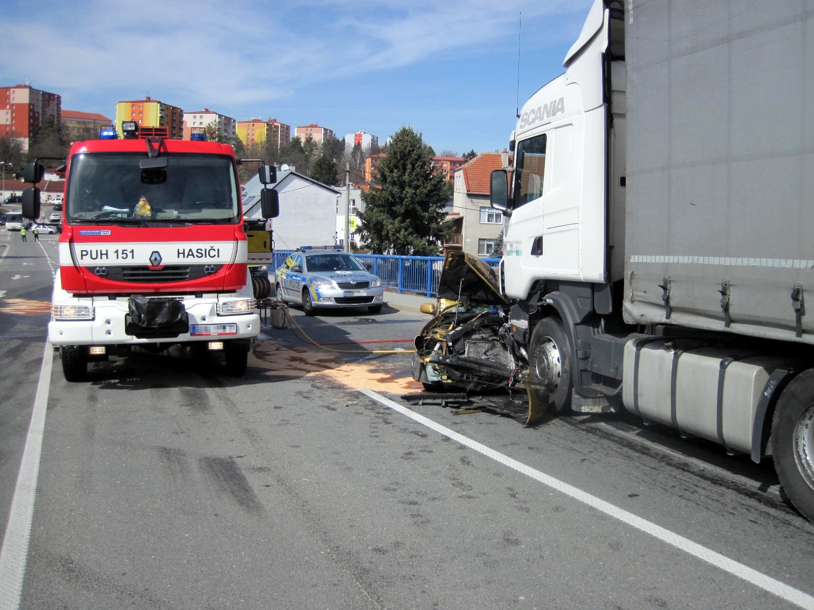 Jednotka byla na místě do dvou minut od ohlášení události na krajské operační středisko. Jak bylo velitelem zásahu z místa potvrzeno, došlo zde ke střetu nákladního tahače Scania s osobním automobilem Citroen.