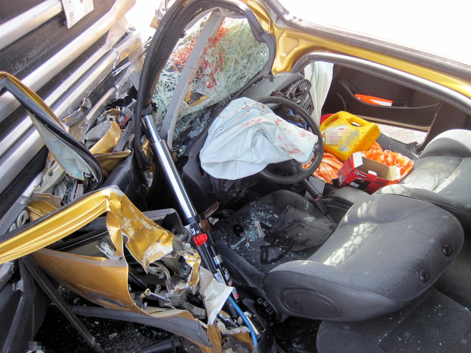 V osobním voze v době nehody cestovaly dvě osoby. Spolujezdkyně byla v době příjezdu hasičů mimo vrak vozu a se zraněním si ji převzala posádka přivolané zdravotnické záchranné služby. Řidič byl ve voze zaklíněn a bylo nutné jej vyprostit pomocí speciálního hydraulického zařízení. Po rozstříhání poškozené části vraku se sevření řidiče podařilo uvolnit a se zraněním byl předán do péče zdravotníků.