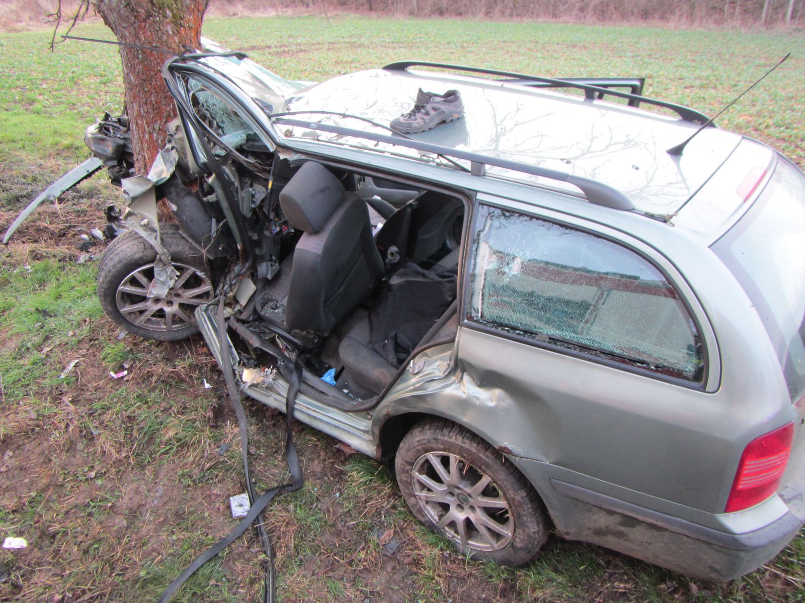Osobní vozidlo zn. Škoda Octavia narazilo do kmene stromu za krajnicí komunikace mezi obcemi Osvětimany a Ježov. Zraněný řidič zůstal ve zdemolované kabině vozidla zaklíněn. Jako první dorazili na místo události profesionální hasiči ze stanice Kyjov (mezikrajská výpomoc HZS Jihomoravského kraje). Ty v dalších minutách posílili profesionální hasiči z  Uherského Hradiště. Na místě zasahovala také posádka zdravotnické záchranné služby, která zraněnému řidiči poskytla první pomoc a zafixovala mu krční páteř.