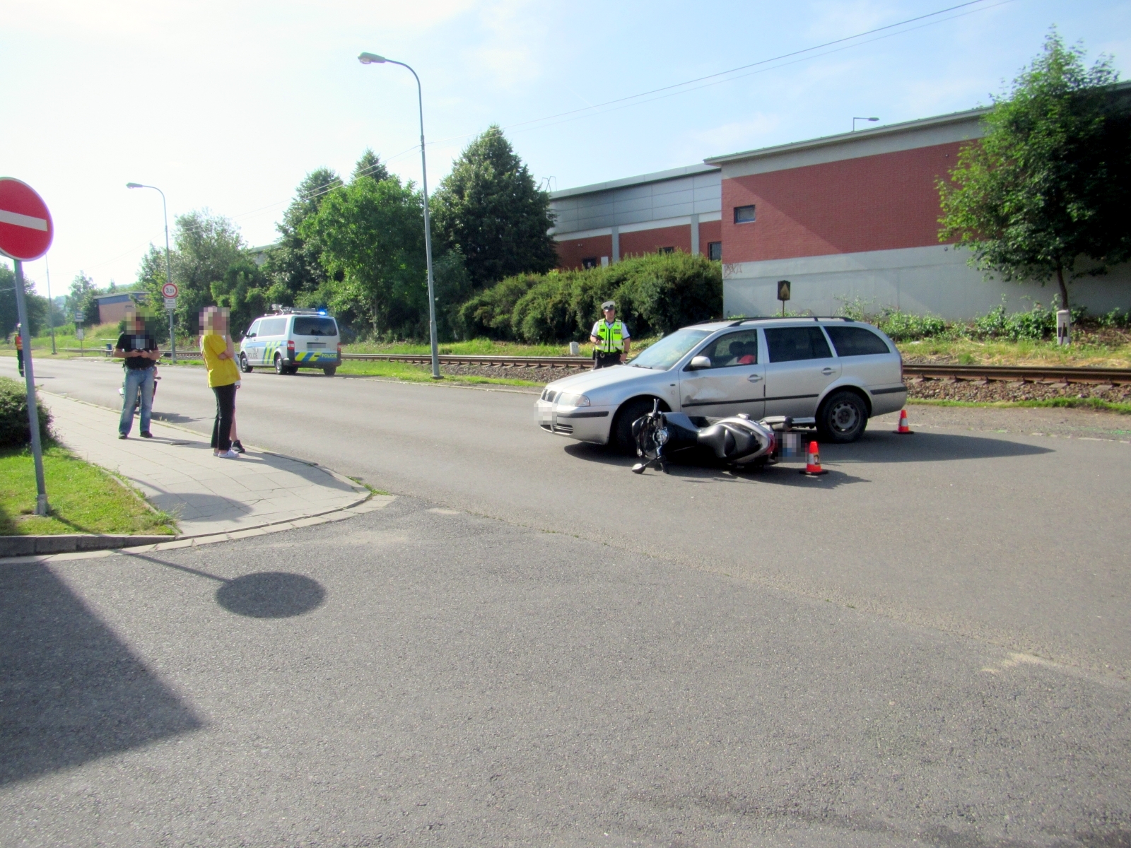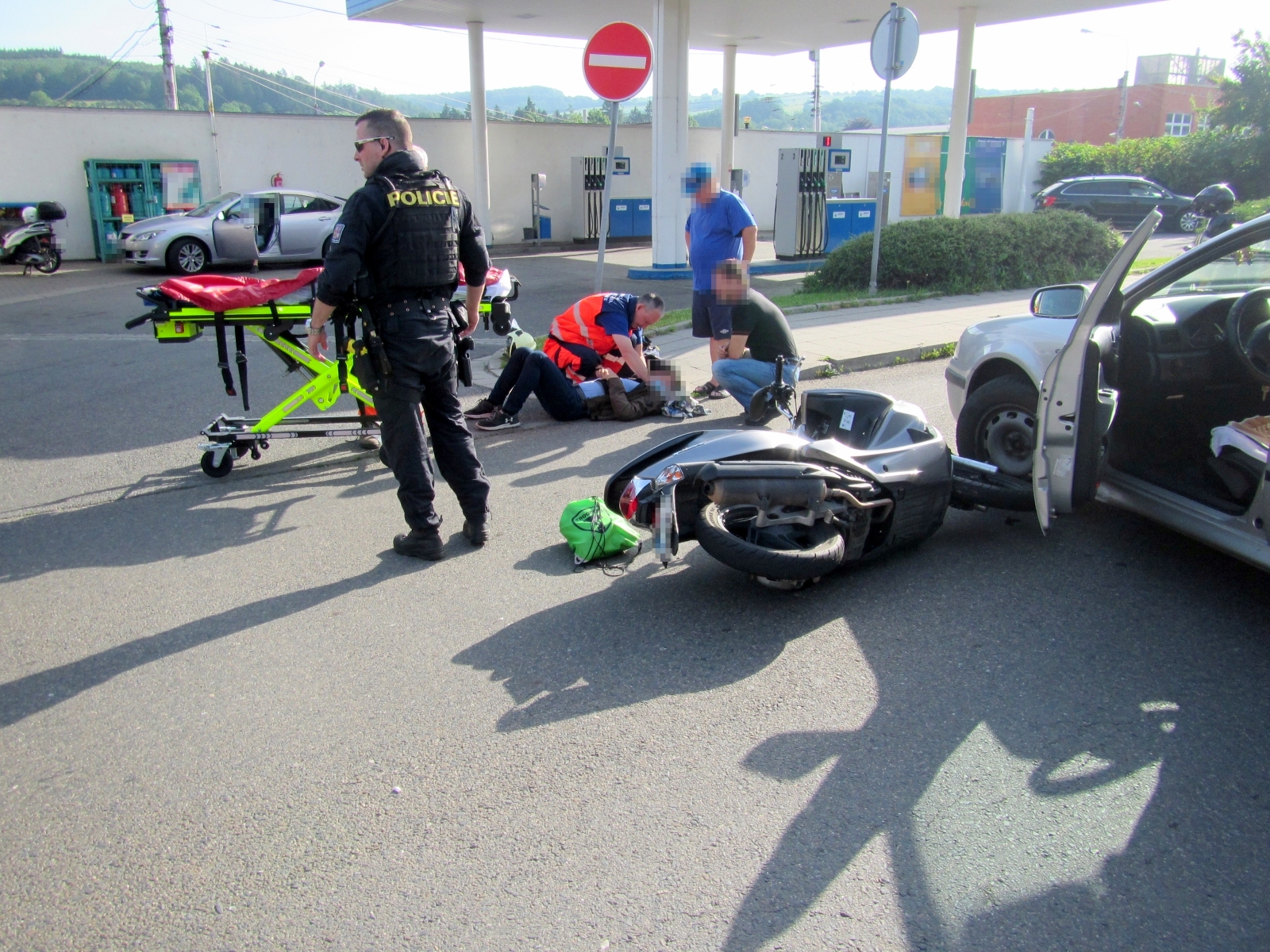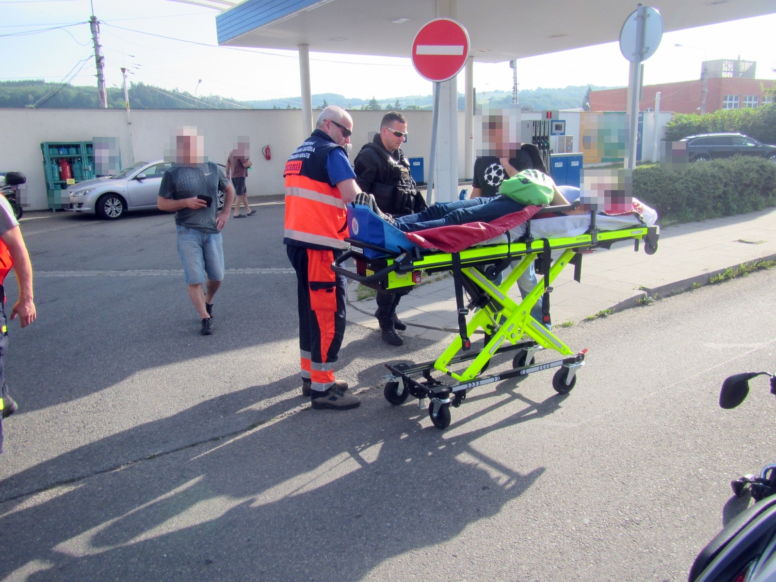 Vzhledem ke vzdálenosti stanice byli hasiči na místě nehody do několika minut. Jak bylo potvrzeno, u benzínové stanice došlo ke střetu malého motorového motocyklu s osobním vozem značky Škoda Octavia, a bohužel také ke zranění řidiče motocyklu. Ten však měl velké „štěstí v neštěstí“, protože na benzínové stanici se v době nehody nacházel nedávný kolega profesionálních hasičů ze Zlína, který mu okamžitě poskytl první pomoc na odpovídající úrovni. Po příjezdu posádky zdravotnické záchranné služby pomohli hasiči s jeho naložením do sanitního vozu a zraněný byl následně odvezen do nedaleké nemocnice.