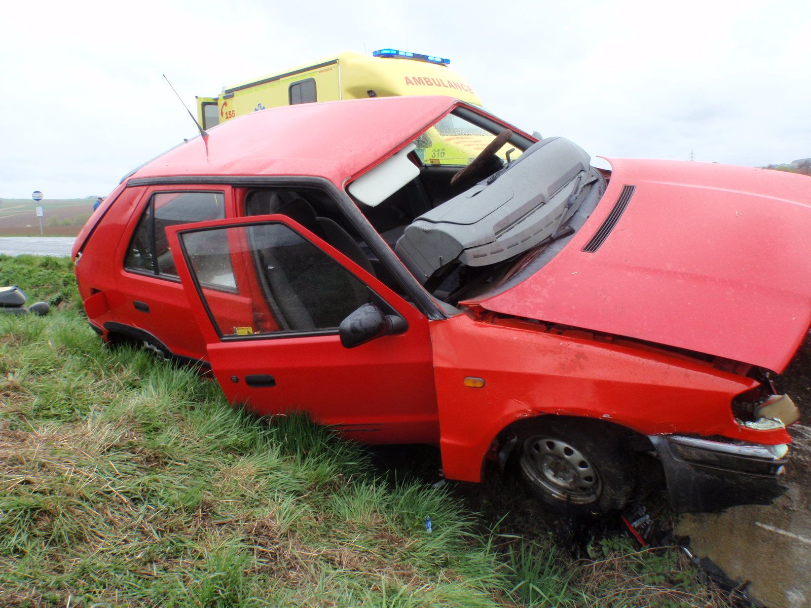 Zraněná řidička osobního vozidla zn. Škoda Felicia zůstala po nárazu do betonového okraje propusti za krajnicí komunikace uvězněna v kabině vozidla. Profesionální hasiči ze stanice Kroměříž, kteří byli v 11:24 hodin na místo hlášené události vysláni, ji po sklopení opěradla sedadla z vozu vyprostili pomocí páteřové desky. Použití hydraulického vyprošťovacího zařízení tak nebylo v tomto případě nutné.