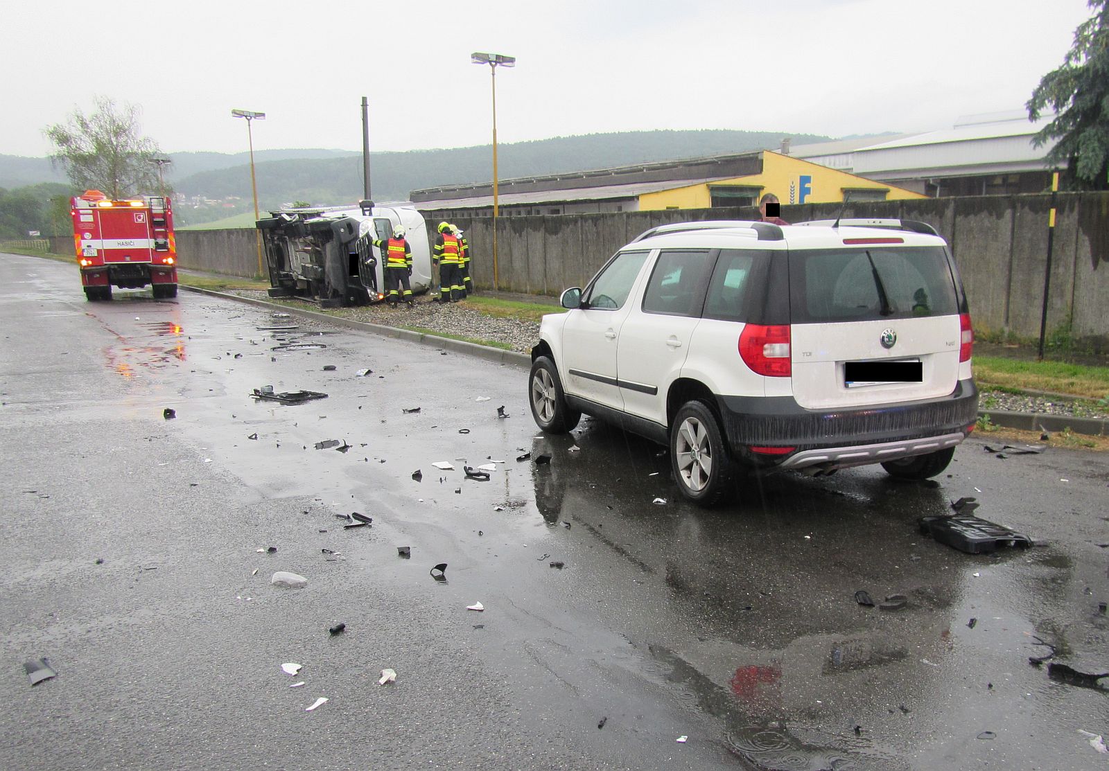 Ti na místo hlášené události dorazili v 09:04 hodin. Na komunikaci před místním zemědělským podnikem došlo ke střetu osobního vozidla zn. Škoda Yeti s dodávkou zn. Renault. Ta zůstala po nehodě převrácená na boku za krajnicí komunikace. Na místě události zasahovala posádka zdravotnické záchranné služby, která měla ve své péči zraněného řidiče dodávky, kterého následně transportovala k dalšímu ošetření do nemocnice.