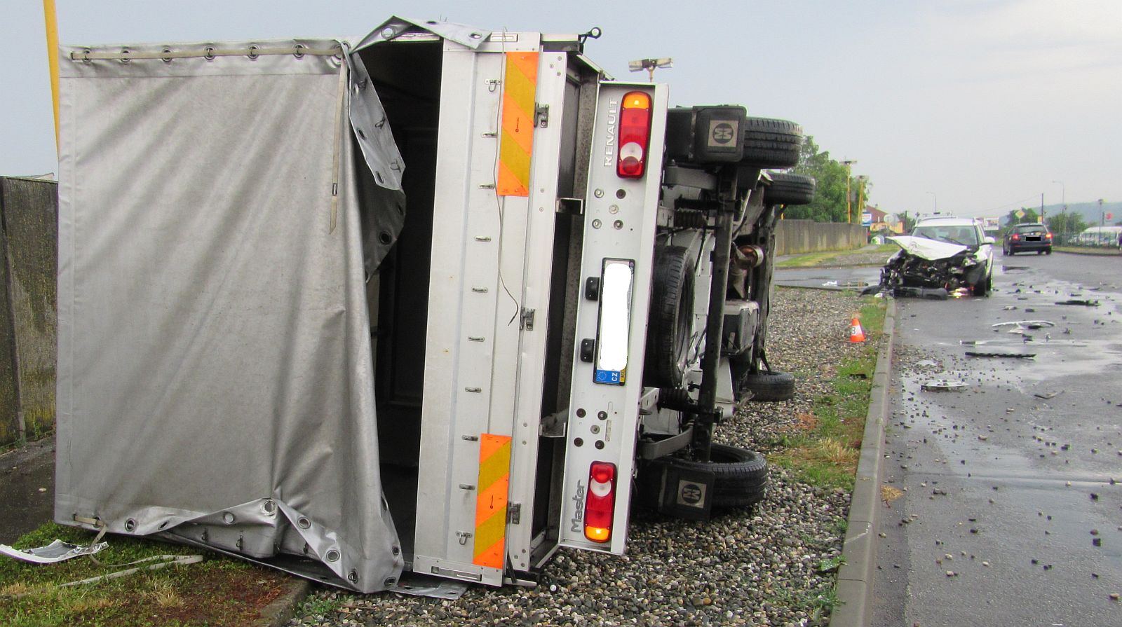 Zraněný řidič převrácené dodávky skončil v nemocnici