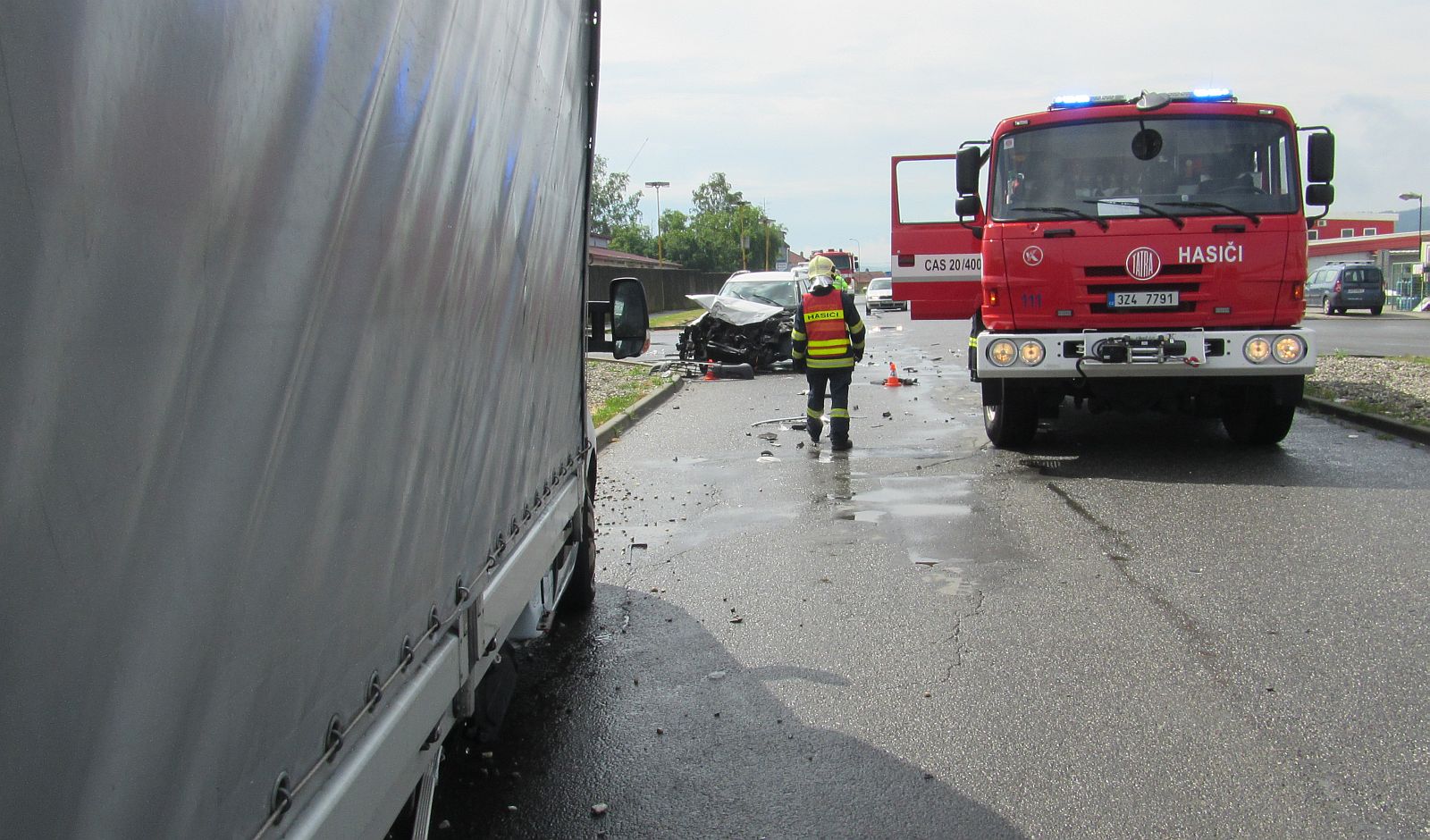 Na místě dopravní nehody dvou vozidel v okrajové části Fryštáku zasahovali dnes, 16.6. 2017, profesionální hasiči z centrální stanice Zlín.
