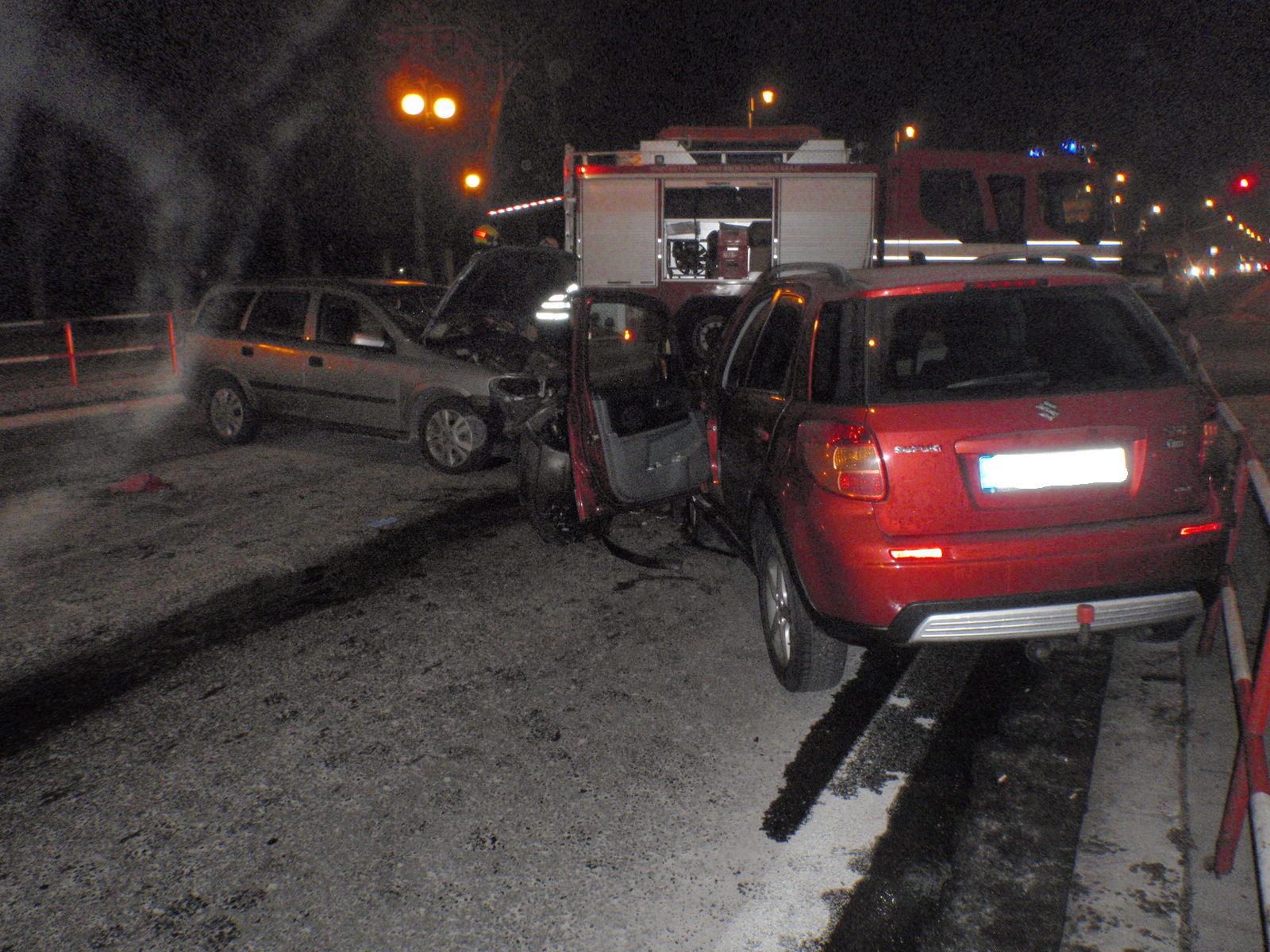Současně hasiči zabezpečili všechna vozidla proti vzniku požáru a ošetřili únik provozních kapalin, které se rozlily na vozovku. K jejich odstranění použili sorbenty. Pro bezpečný zásah i pohyb záchranářů bylo místo nasvíceno pomocí teleskopického osvětlovacího stožáru.