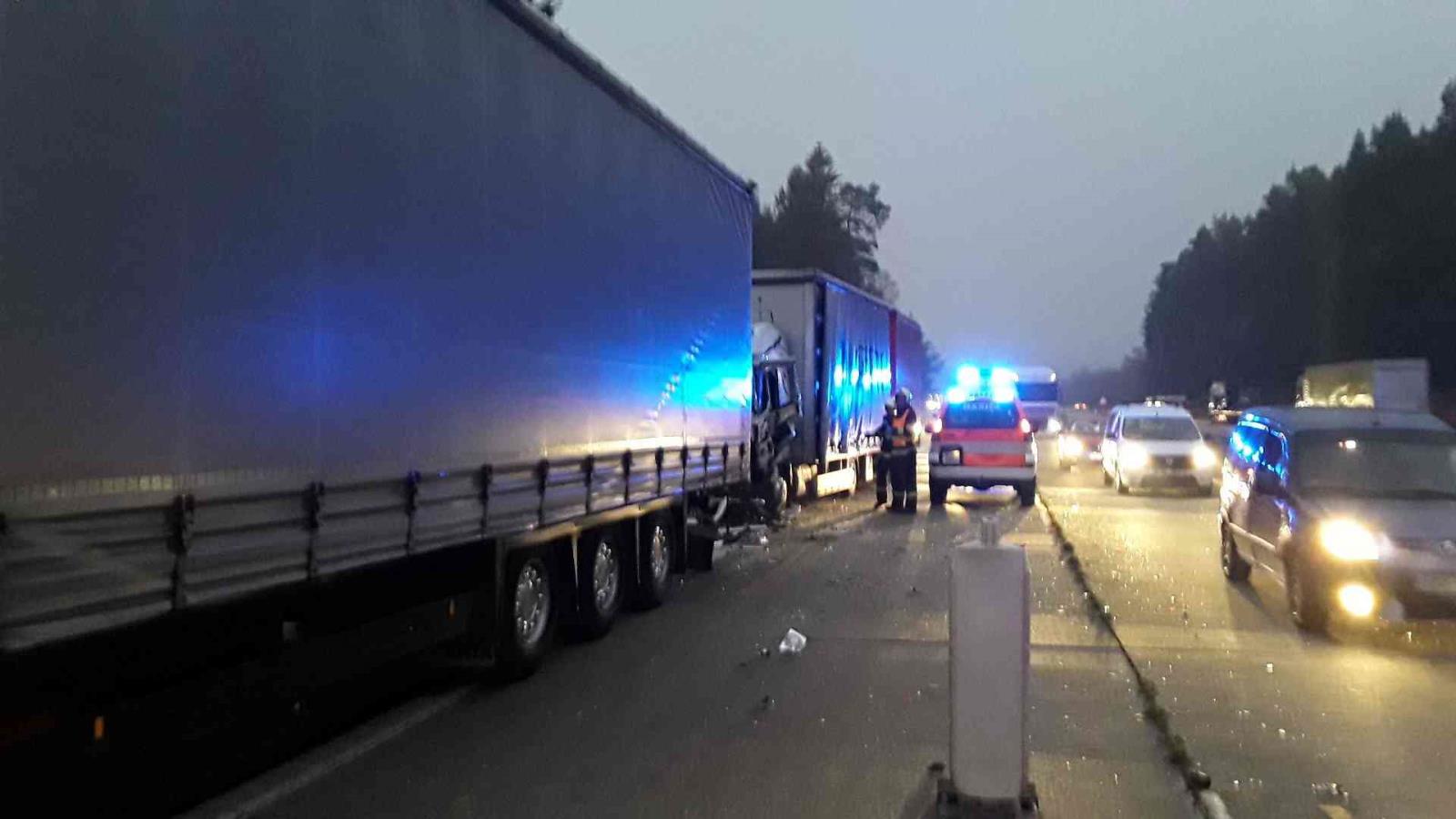 V pondělí 12.11.2018 v 06.18 hod přijala operátorka tísňové linky 112 Hasičského záchranného sboru Kraje Vysočina oznámení o dopravní nehodě dvou nákladních a jednoho osobního vozidla na 99. km dálnice D1 ve směru na Prahu. Na místo události vyjely jednotky profesionálních hasičů ze stanic v Humpolci a Jihlavě.