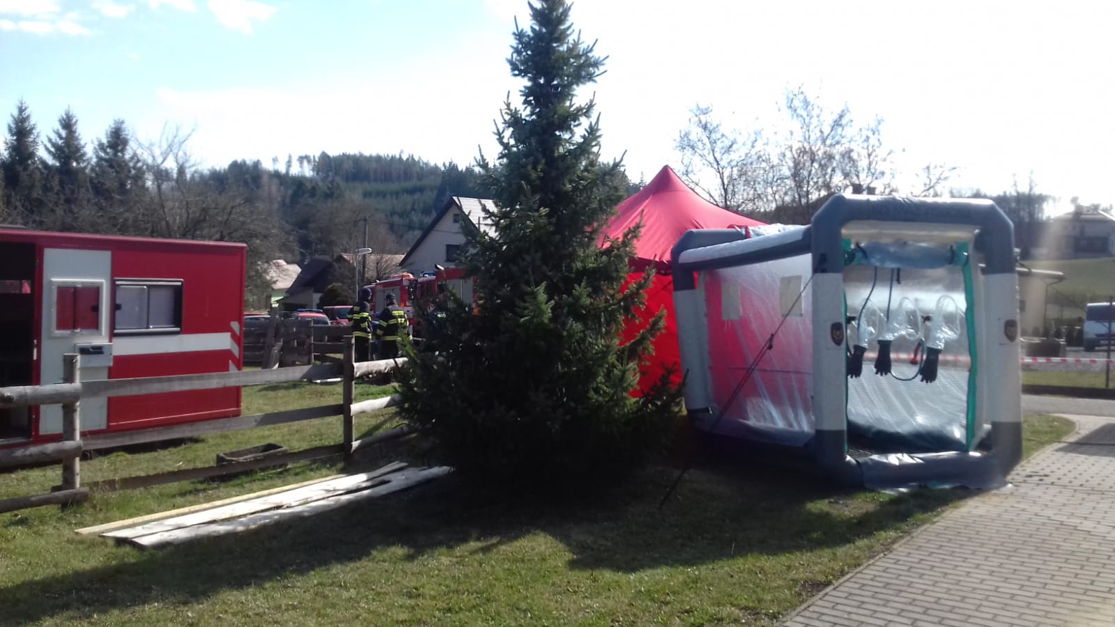 V domově hasiči začali pomáhat po neúspěšném vyjednávání hejtmana Kraje Vysočina Jiřího Běhounka s Armádou ČR o nasazení sil a prostředků.