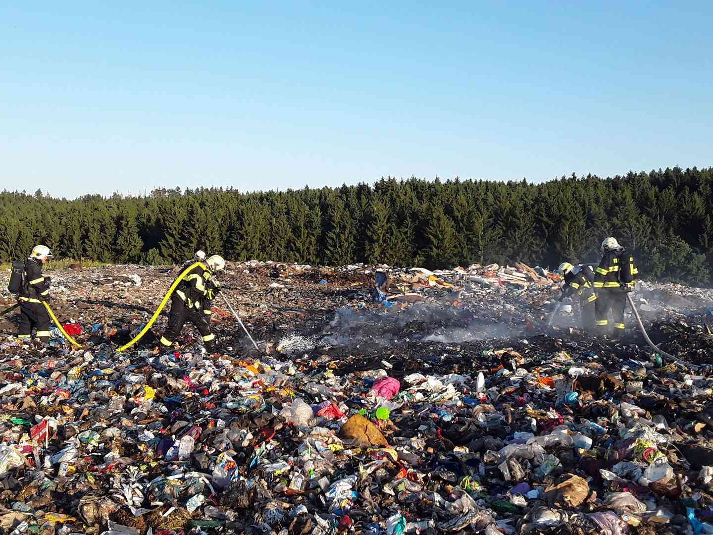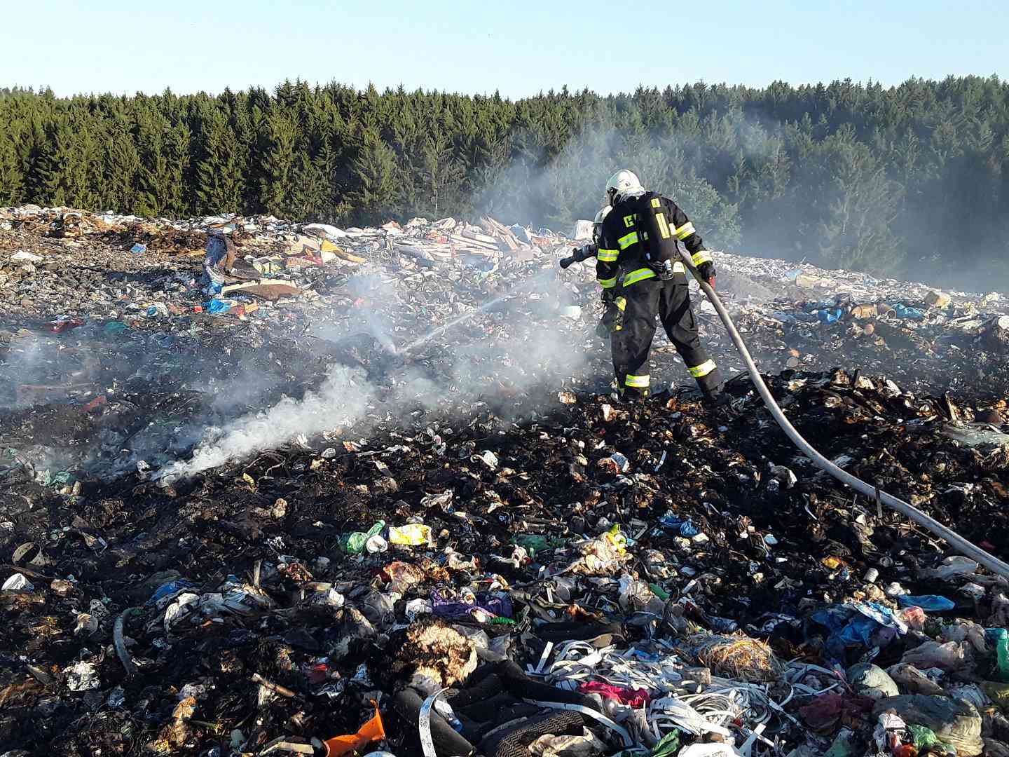 Pacovští profesionální a dobrovolní hasiči likvidovali vpodvečer požár skládky komunálního odpadu v Hrádku. K požáru vyjížděli v 19.11 hod.