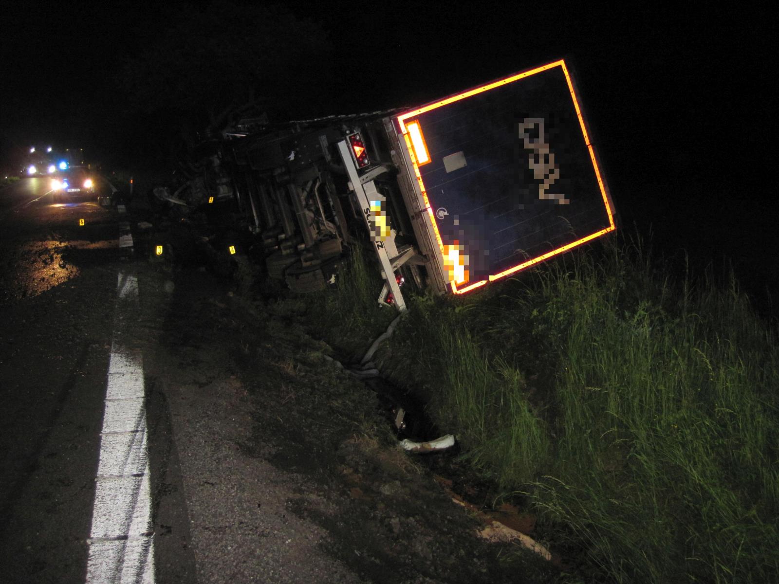 Dnes krátce před jednou hodinou v noci se převrátil na silnici I/50 u Bystřice pod Lopeníkem ve směru na Bánov kamion do příkopu a...