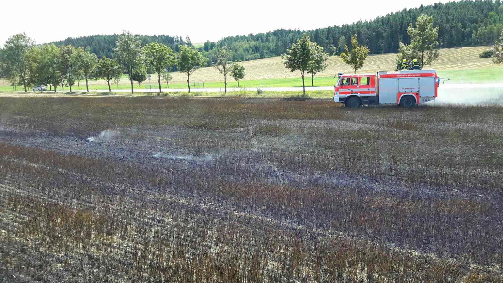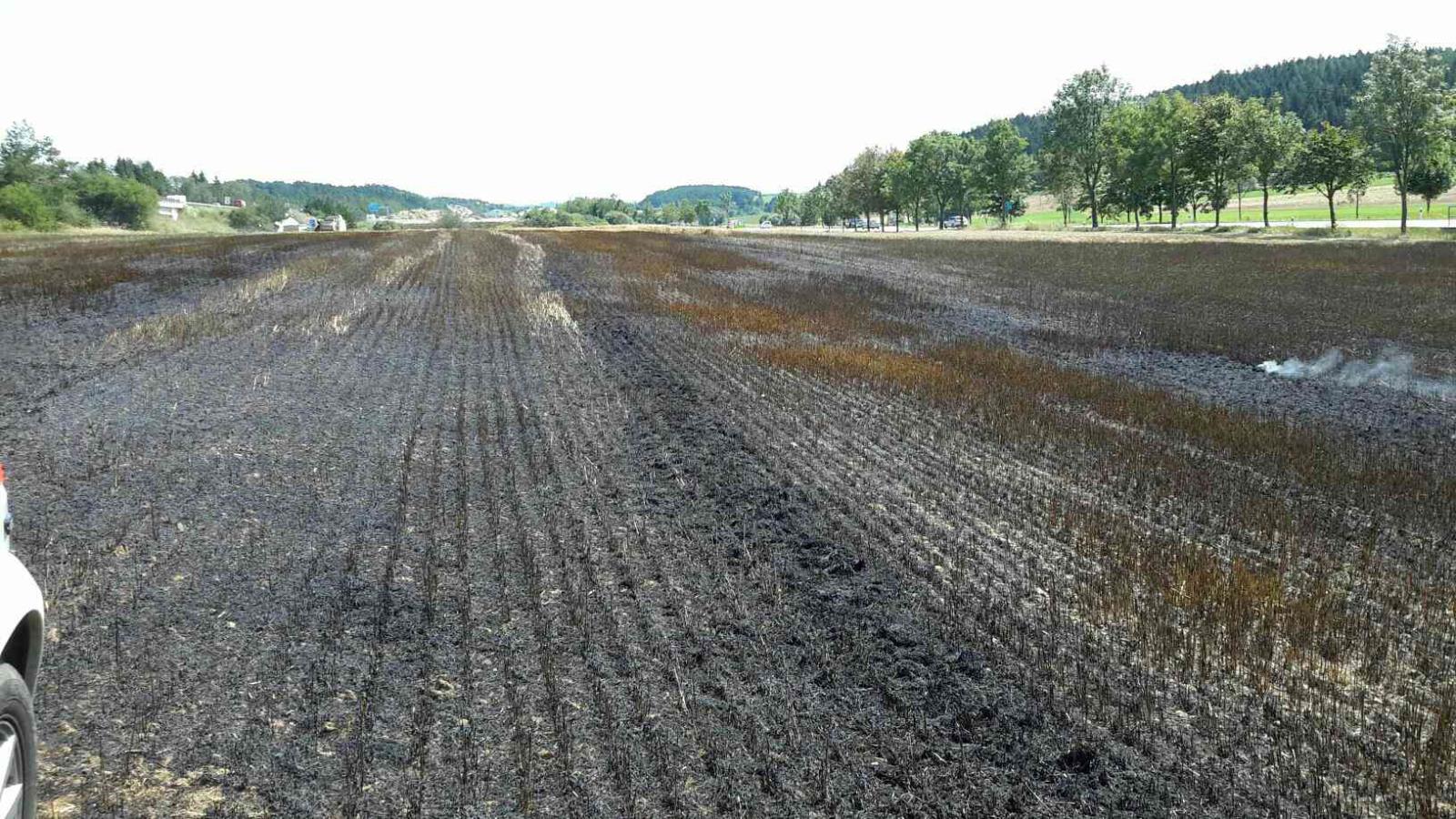 Jiskra od kombajnu zapříčinila požár pole na Žďársku