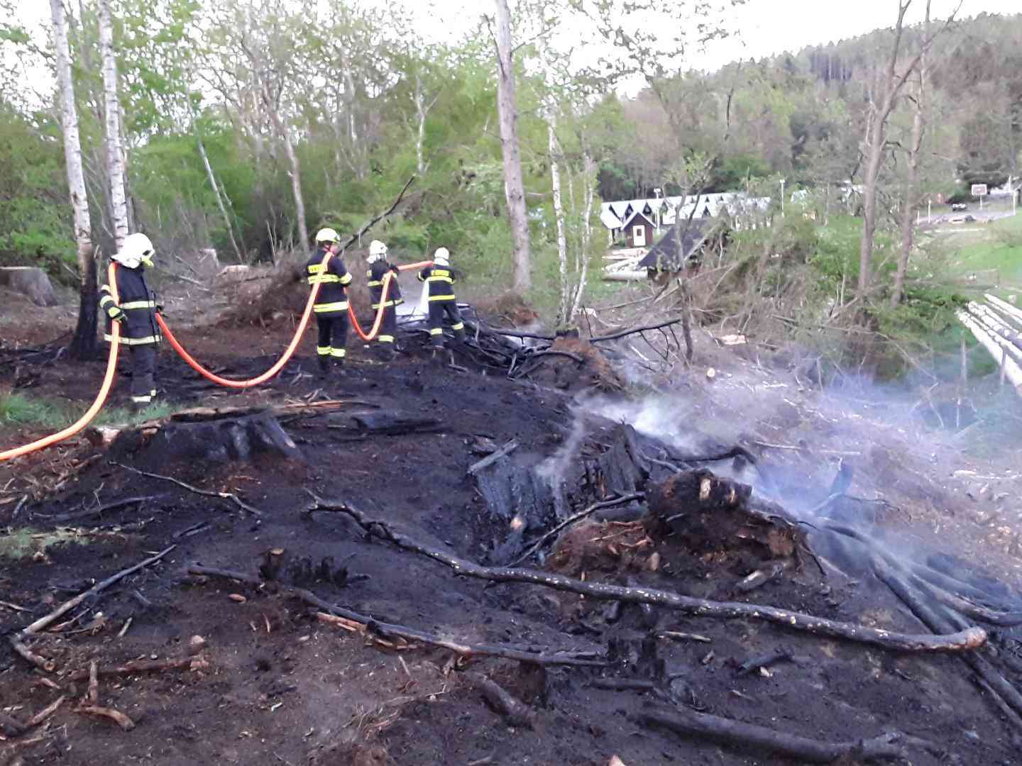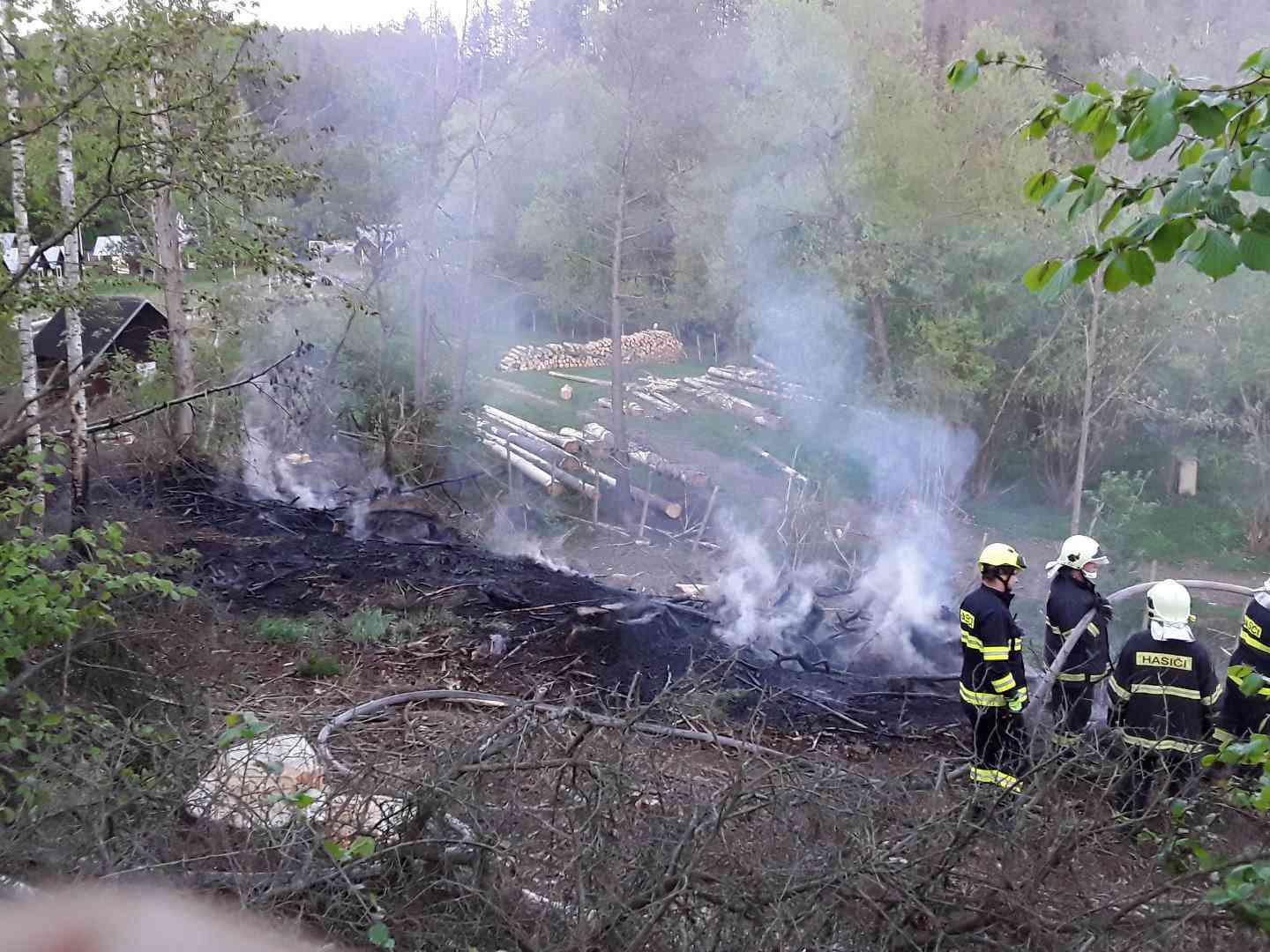 Čtyři jednotky hasičů likvidovaly v pátek požár trávy a klestí u obce Krasonice