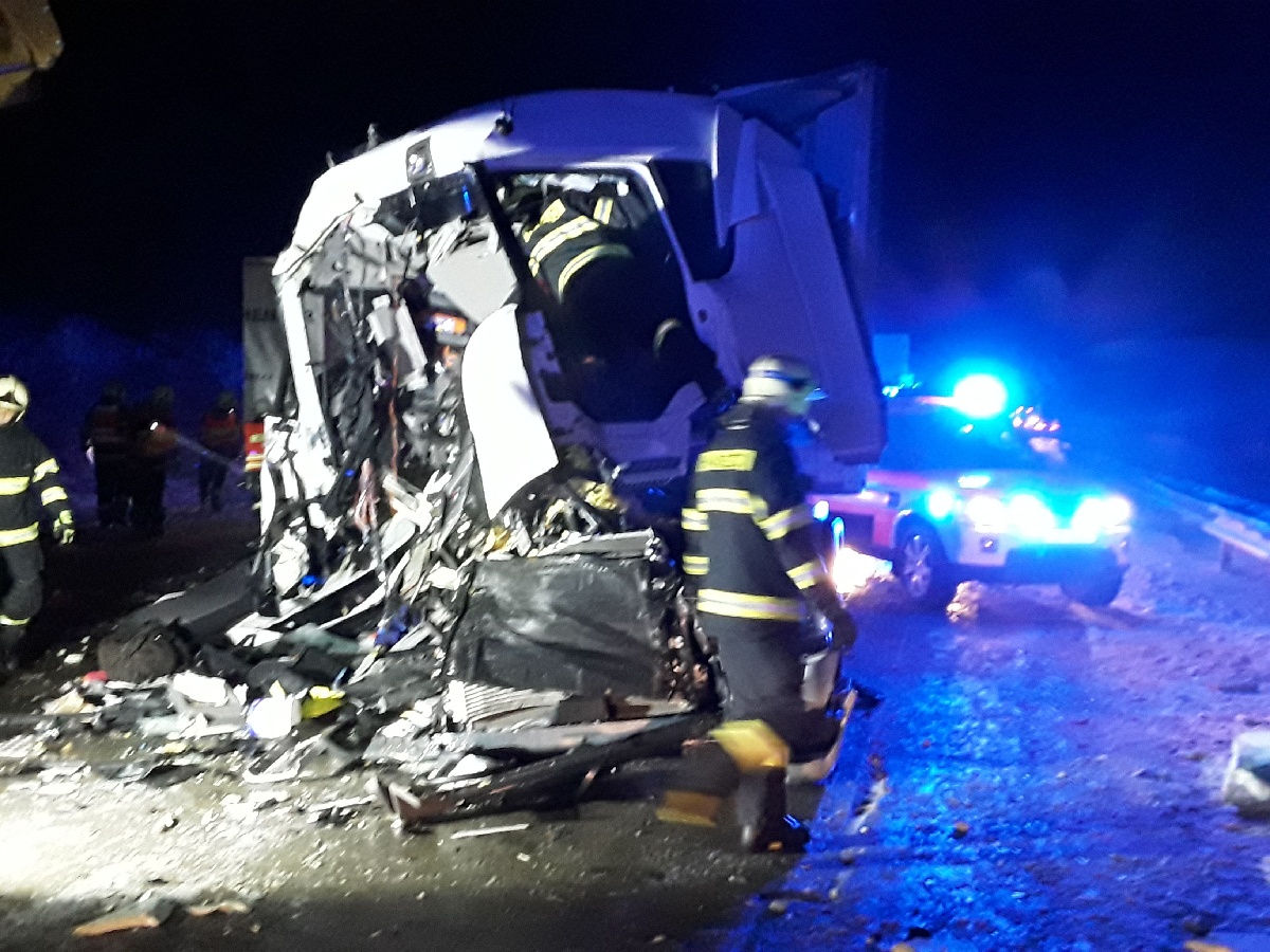 U vážné dopravní nehody dvou kamionů na 103. km dálnice D1 ve směru na Brno zasahovaly ve středu 12. února 2020 po půl třetí ráno jednotky profesionálních hasičů ze stanic v Jihlavě a Humpolci.