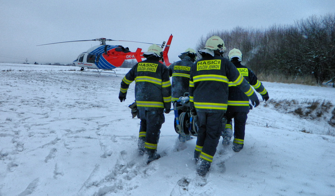 V 14,30 hod pomohli profesionální hasiči z Telče zdravotníkům s transportem pacienta do vrtulníku na ulici Myslibořská v Telči.