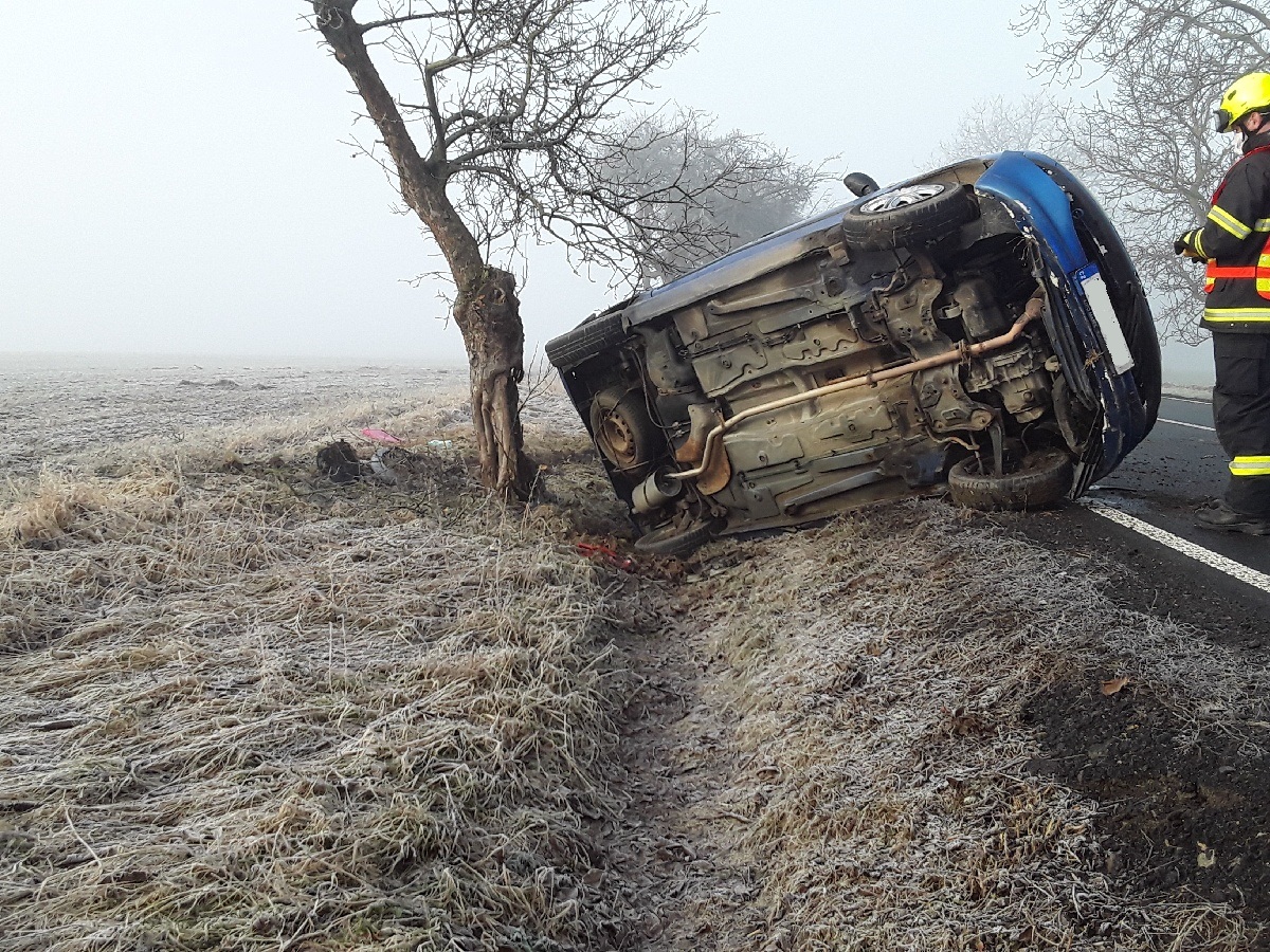 Při havárii osobního vozidla u Kožlí se zranila řidička a dítě