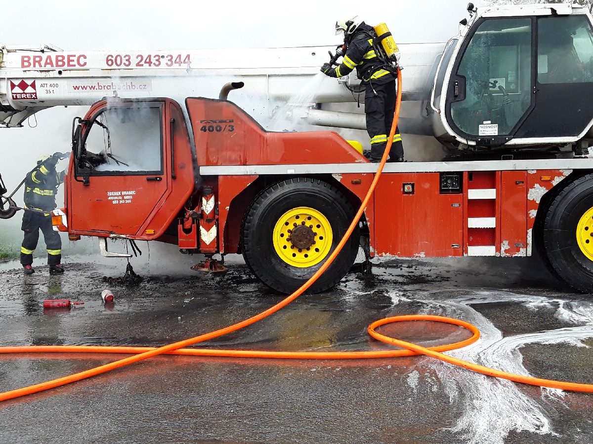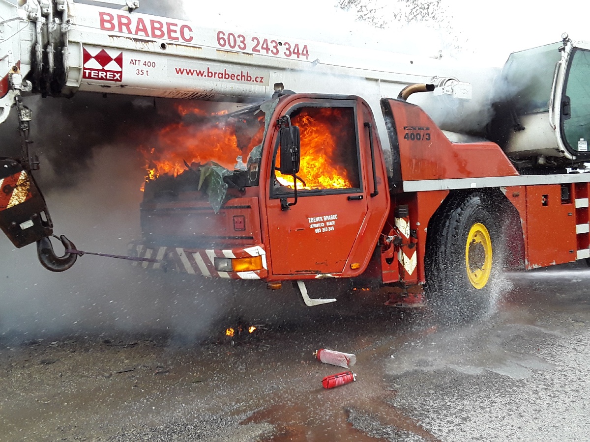 U Březinky hořel autojeřáb, škoda se vyšplhala na milion korun