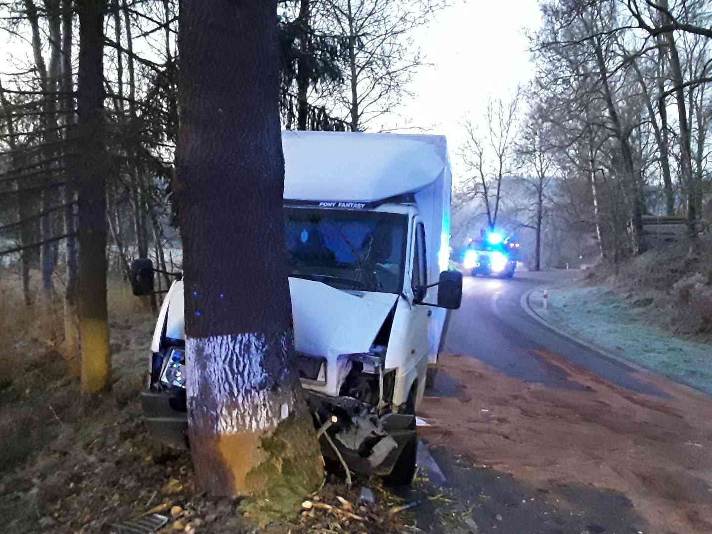 Jednotka profesionálních hasičů ze stanice Bystřice nad Pernštejnem vyjela ve čtvrtek 31. října 2019 po půl šesté ráno k ohlášenému nárazu dodávky do stromu u Dalečína na Žďársku.