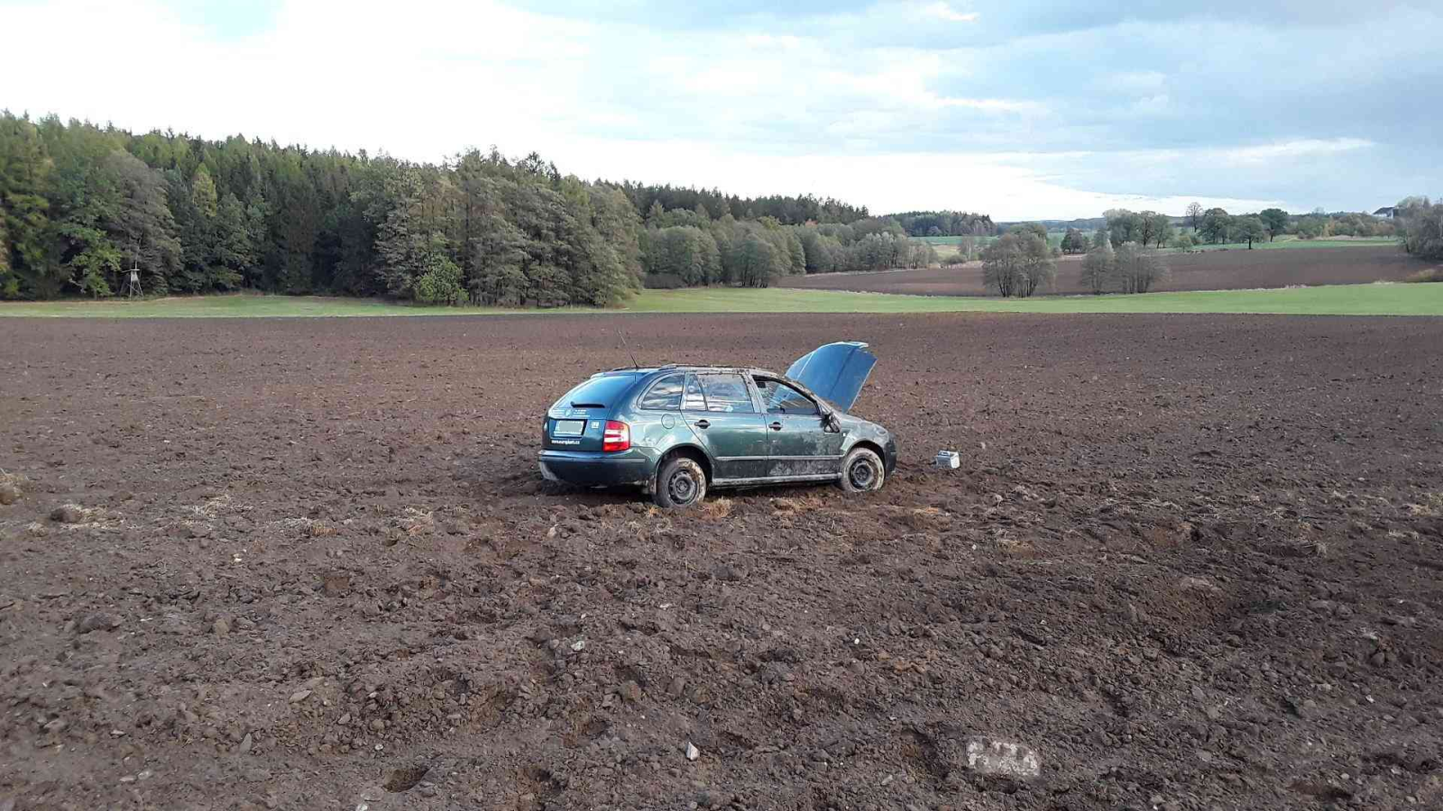 Osobní vůz skončil po nehodě mimo komunikaci v poli. Při nehodě se zranila řidička vozidla a skončila v péči zdravotníků.