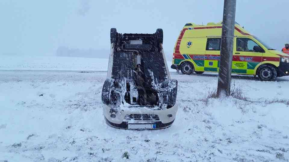 U Jinošova na Vysočině havaroval osobní vůz, nehoda si vyžádala jedno zranění