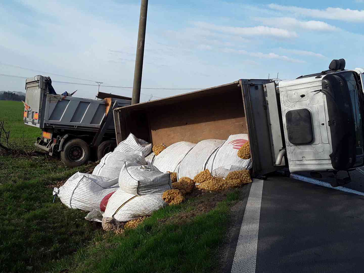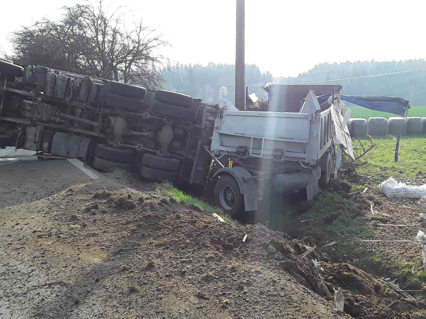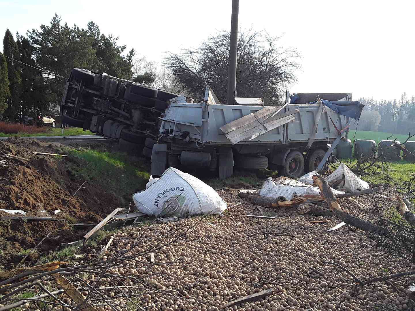 U Věže havaroval nákladní vůz převážející brambory.