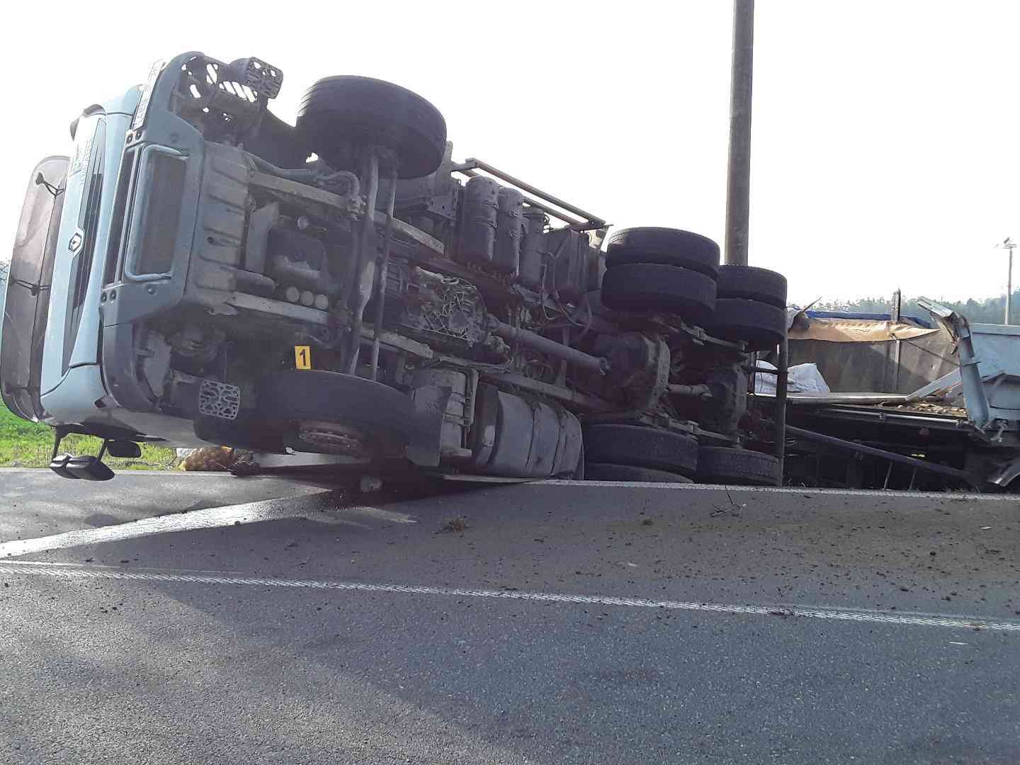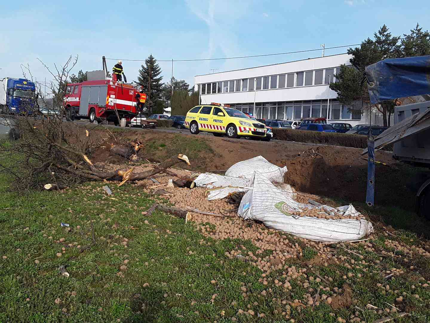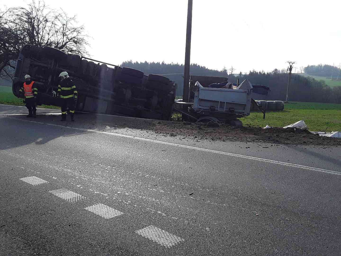 U Věže havaroval nákladní vůz převážející brambory.