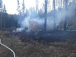 U obce Moraveč hořela v lese maringotka