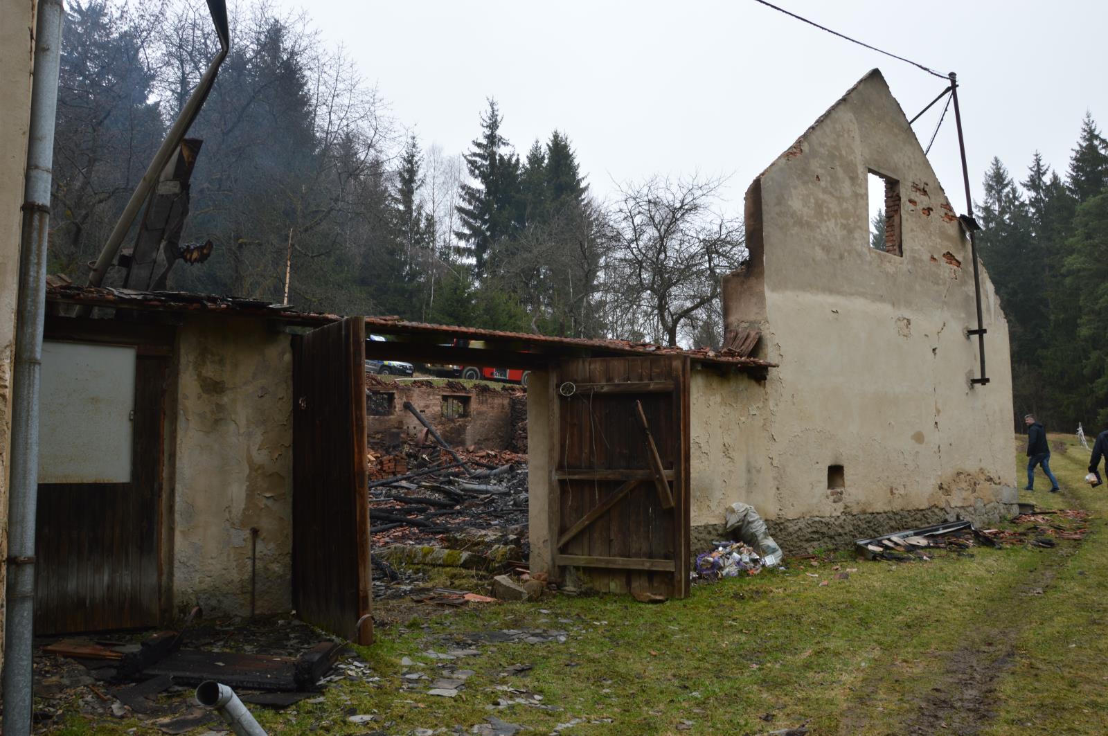 V době příjezdu prvních jednotek hasičů na místo události byla neobývaná hospodářská usedlost v plamenech. Hasiči na likvidaci požáru nasadili několik vodních proudů a přibližně po třiceti minutách intenzivního hašení se jim podařilo požár dostat pod kontrolu. Dohašovací a likvidační práce na místě probíhaly až do ranních hodin.
