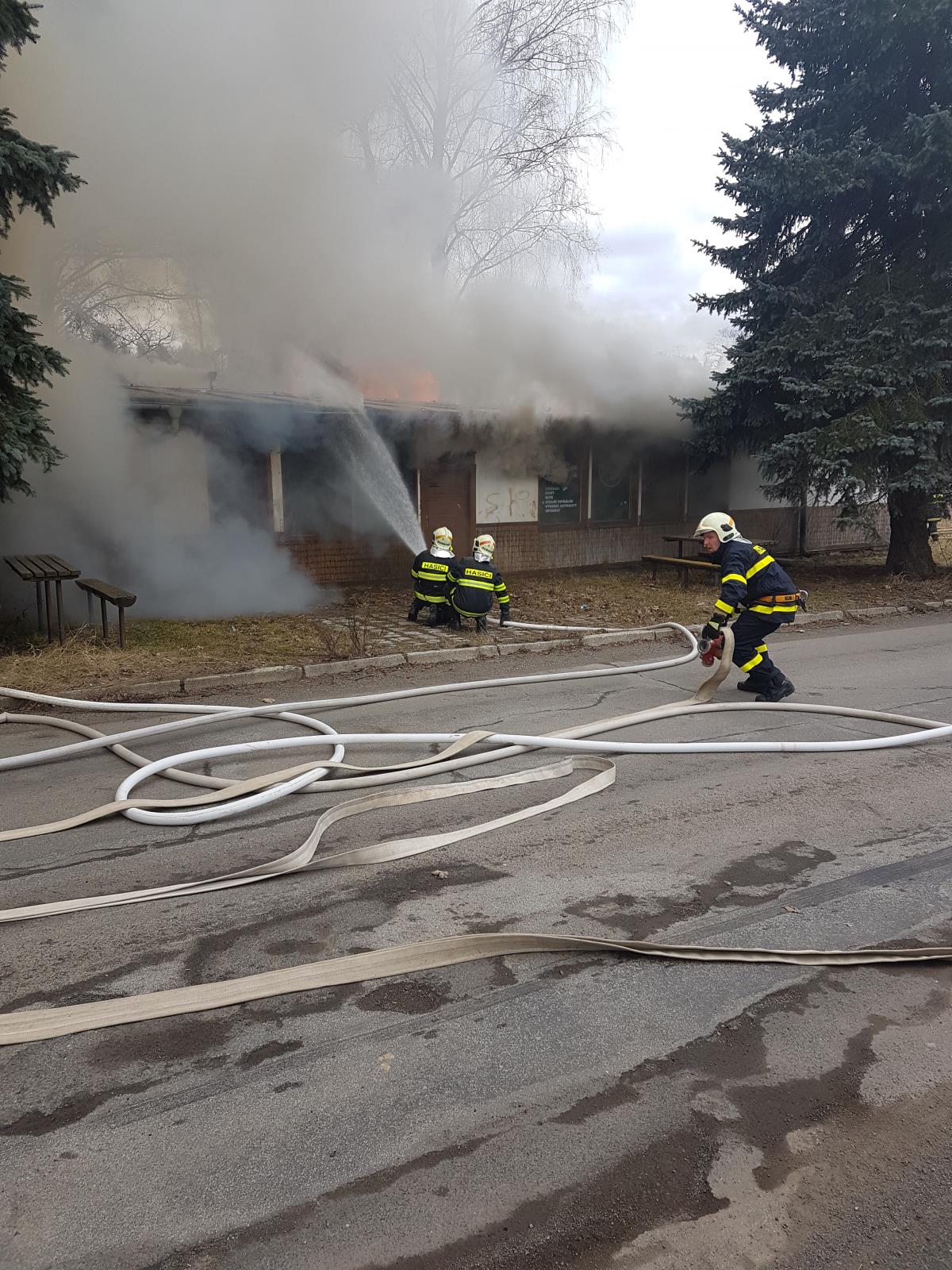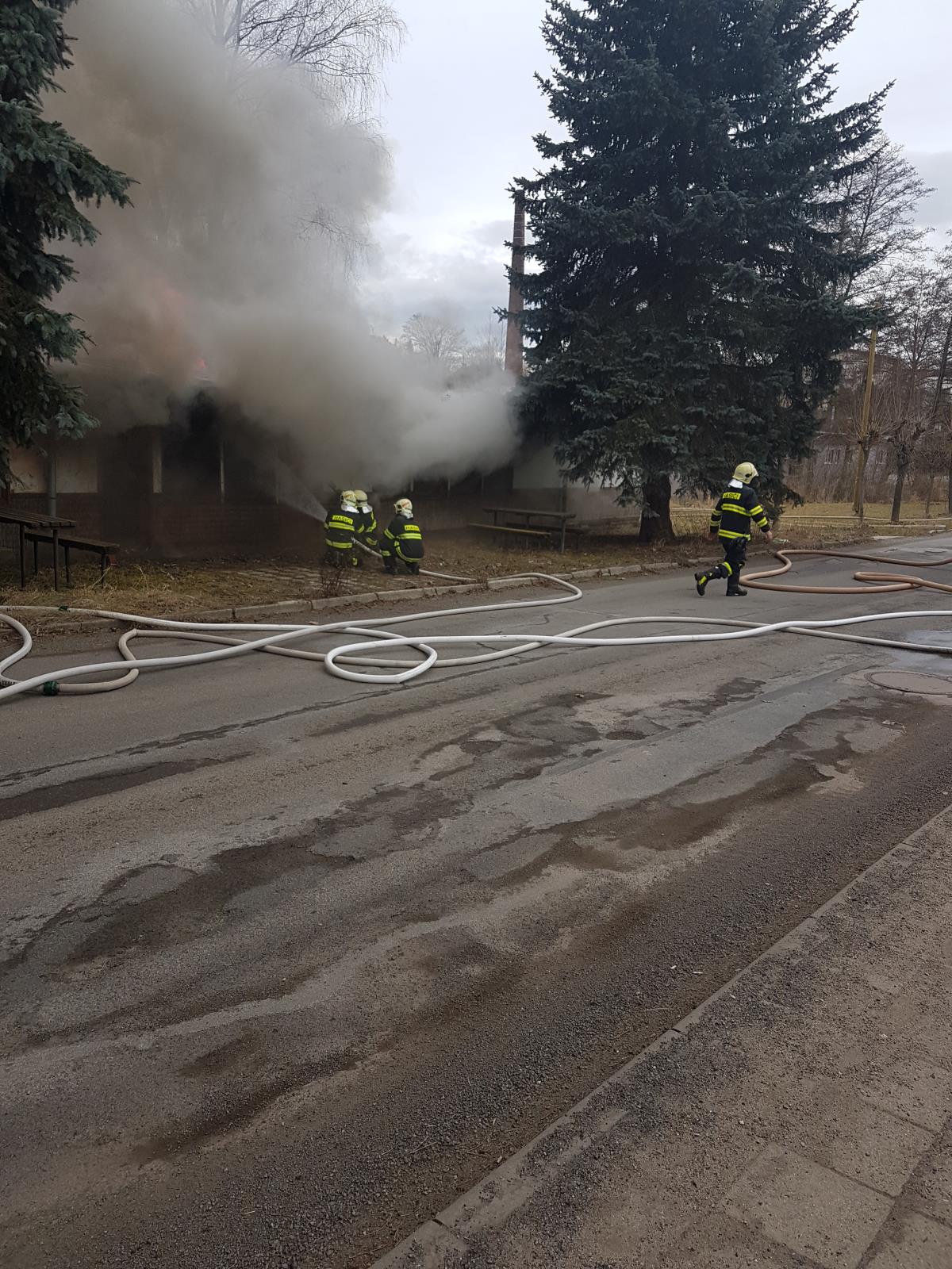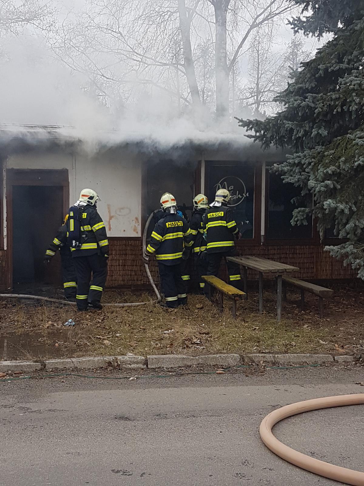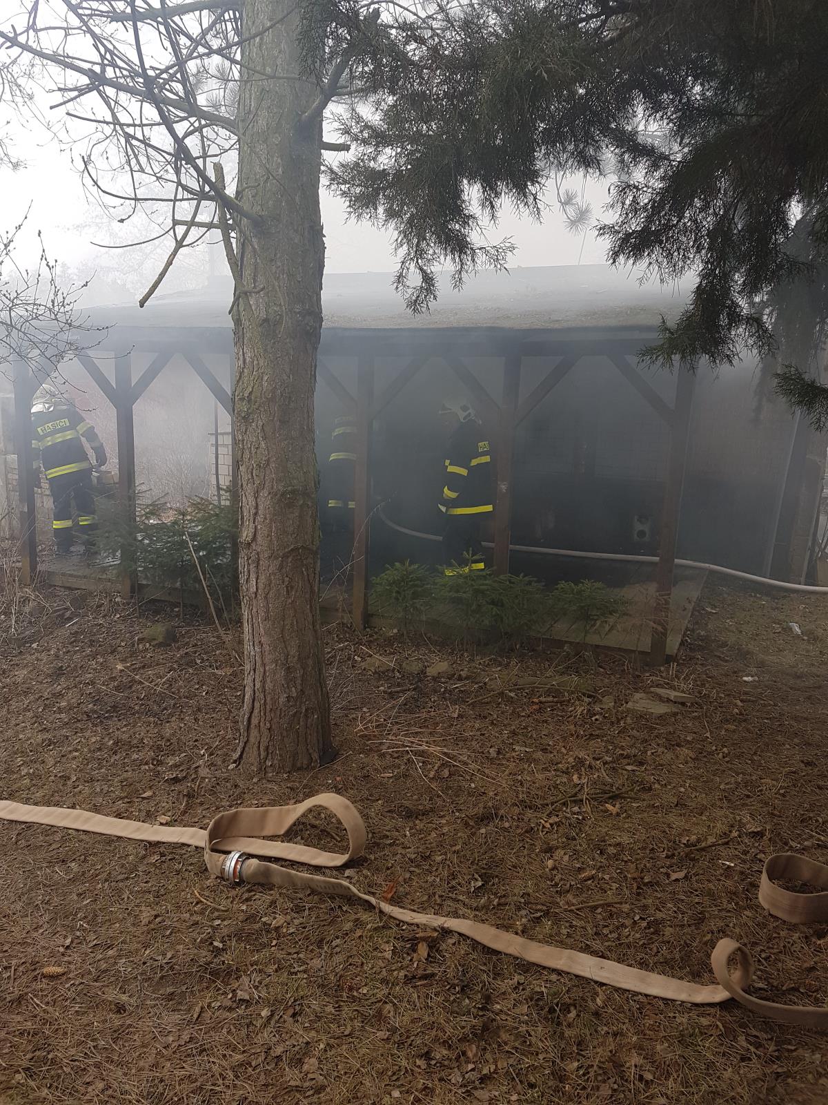 Hasiči se kromě hašení objektu zaměřili také na ochranu okolí a před plameny chránili vzrostlé stromy v těsné blízkosti požářiště.