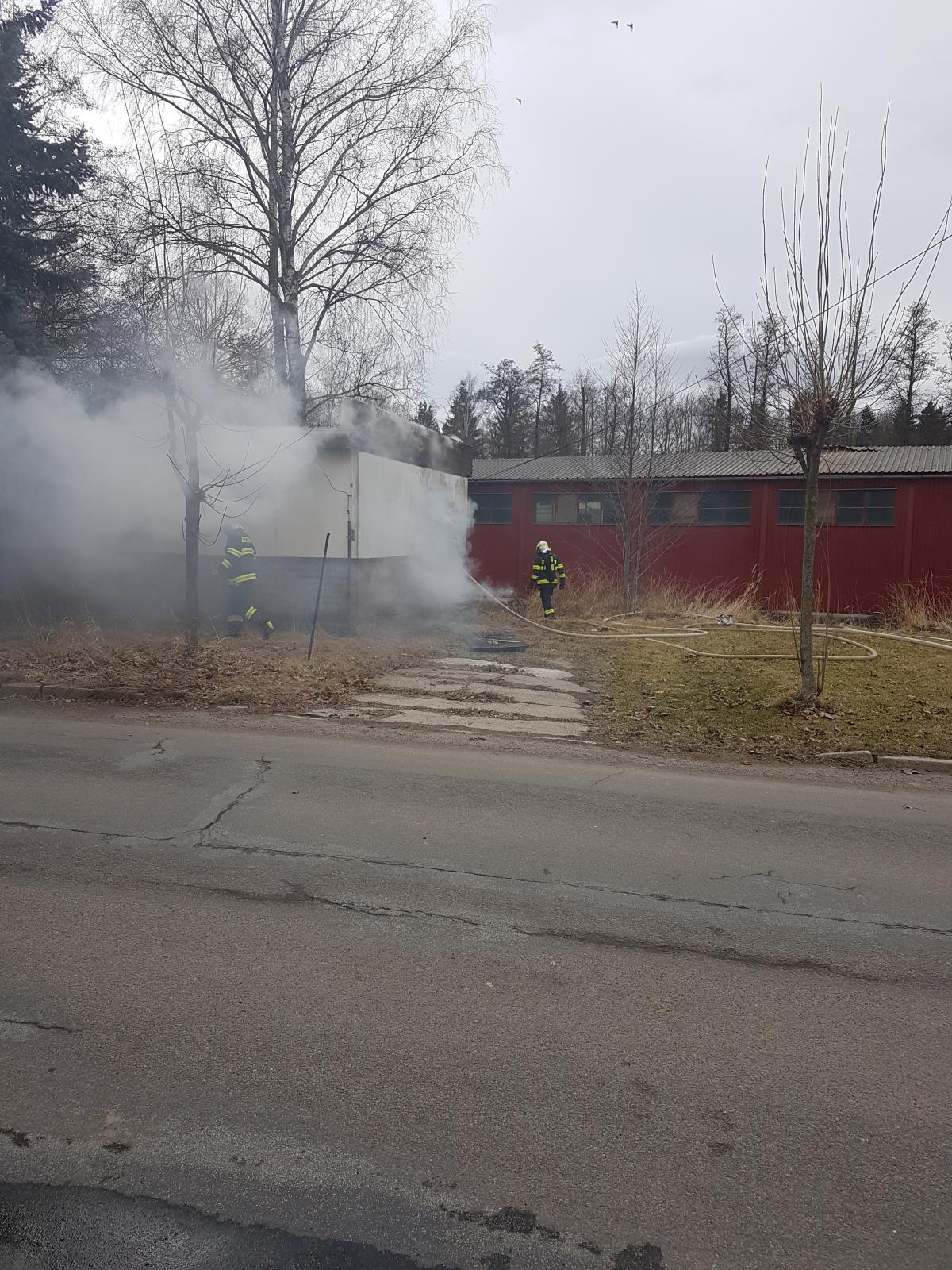 Hustý dým valící se z hořícího převážně dřevotřískového objektu byl viditelný na desítky metrů. Jako první dojela na místo události jednotka profesionálních hasičů z Polné. V době příjezdu této jednotky se z budovy valil hustý dým a začaly šlehat plameny. Hasiči na likvidaci požáru nasadili několik vodních proudů a objekt odpojili od přívodu elektrické energie.