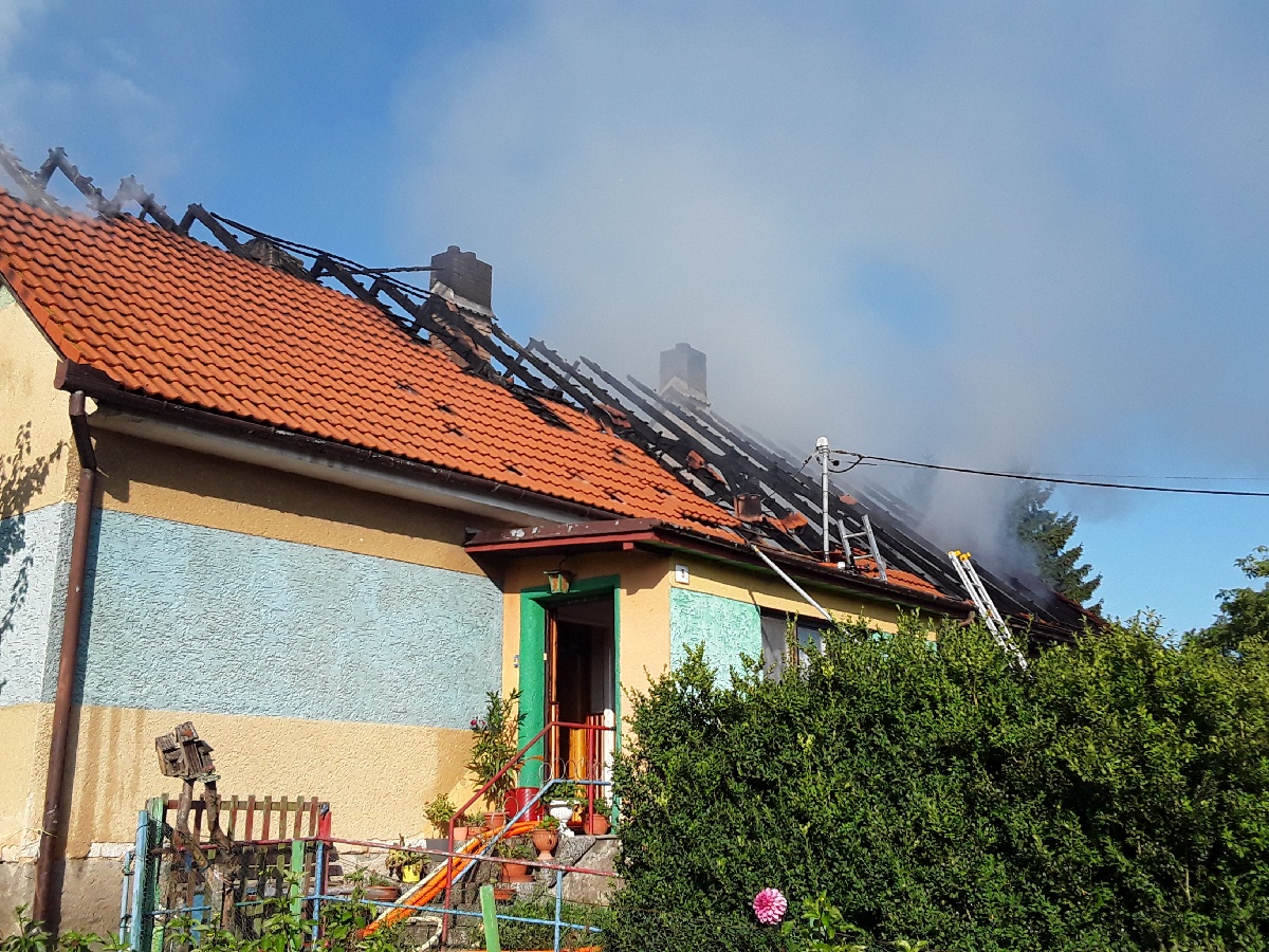 V Josefově hořel rodinný dům, na místě zasahovalo pět jednotek hasičů