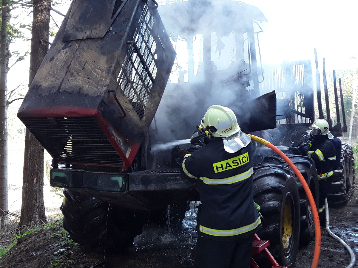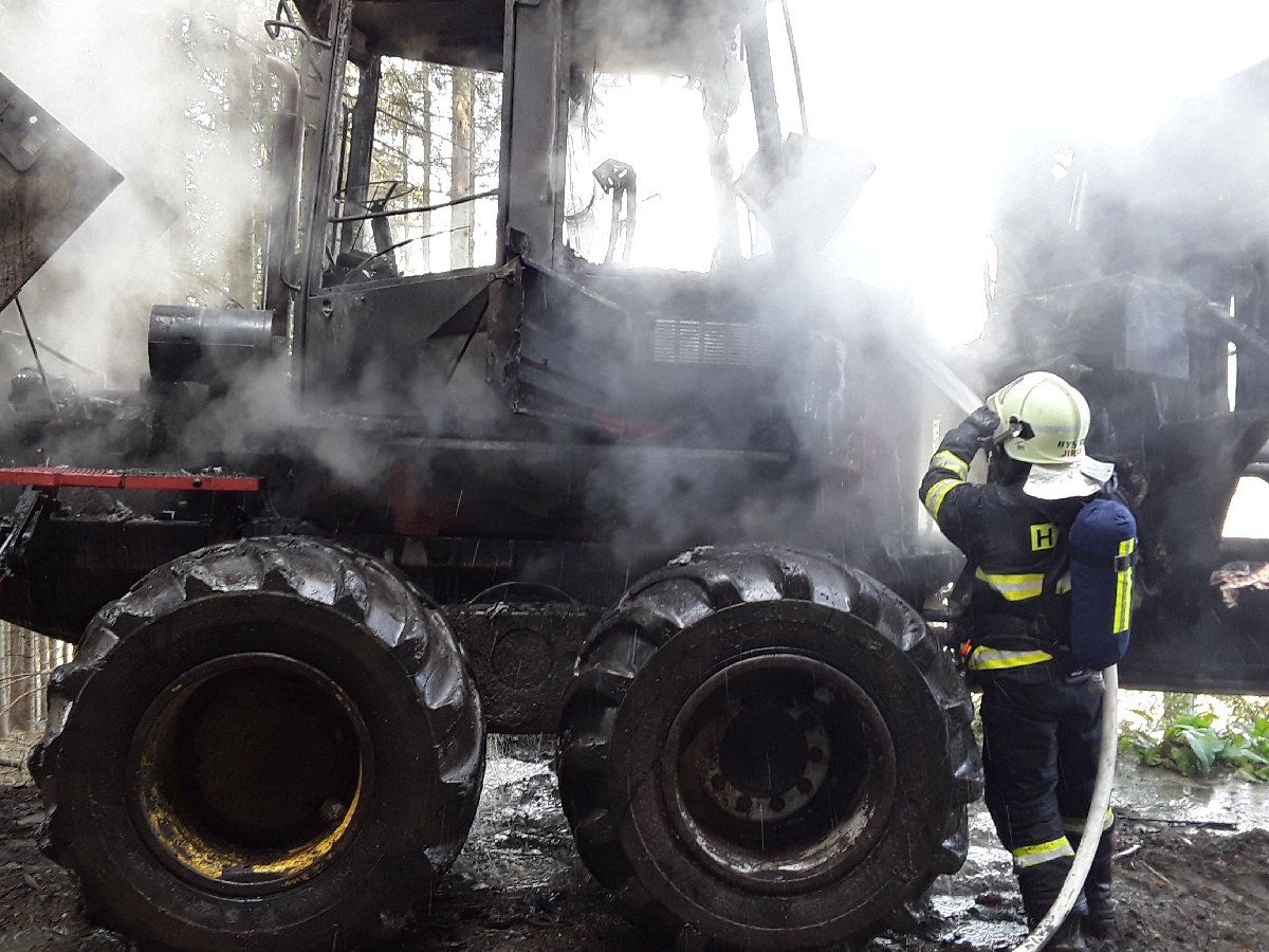Škodu v předběžné výši 1,5 milionu korun za sebou zanechal požár vyvážecí soupravy v lese u Nyklovic na Žďársku. Hlášení o požáru přijala operátorka tísňové linky 112 Hasičského záchranného sboru Kraje Vysočina v pondělí 11. října 2021 v 12.00 hod.