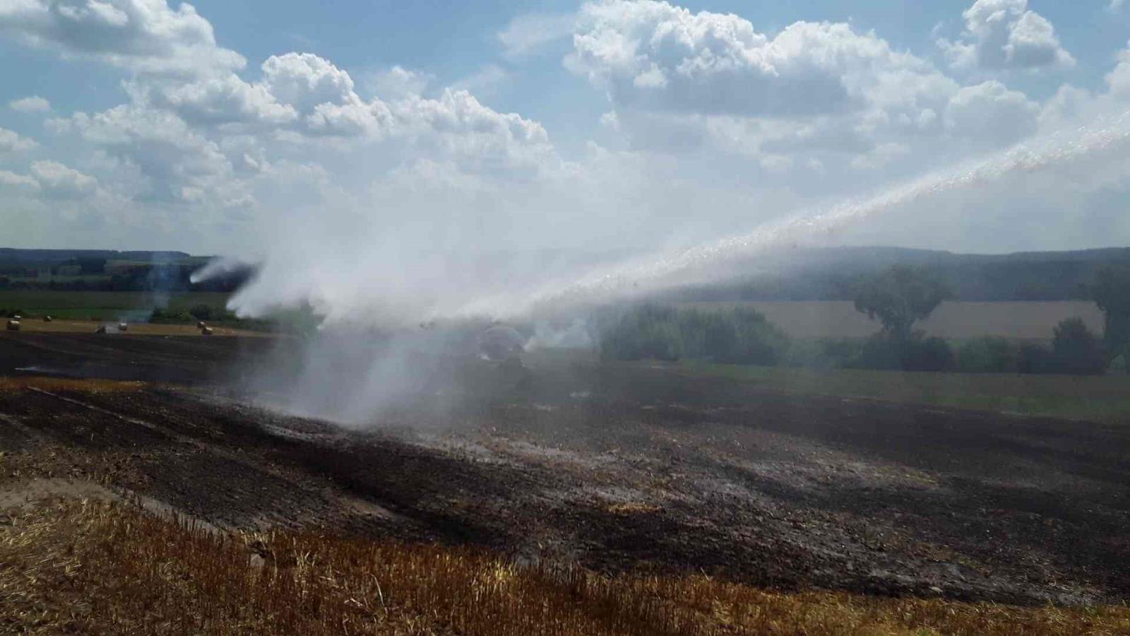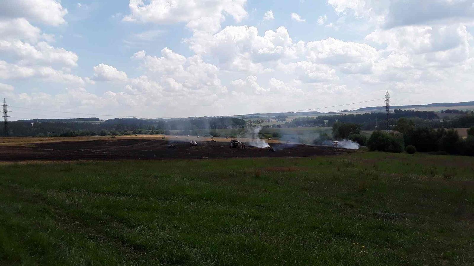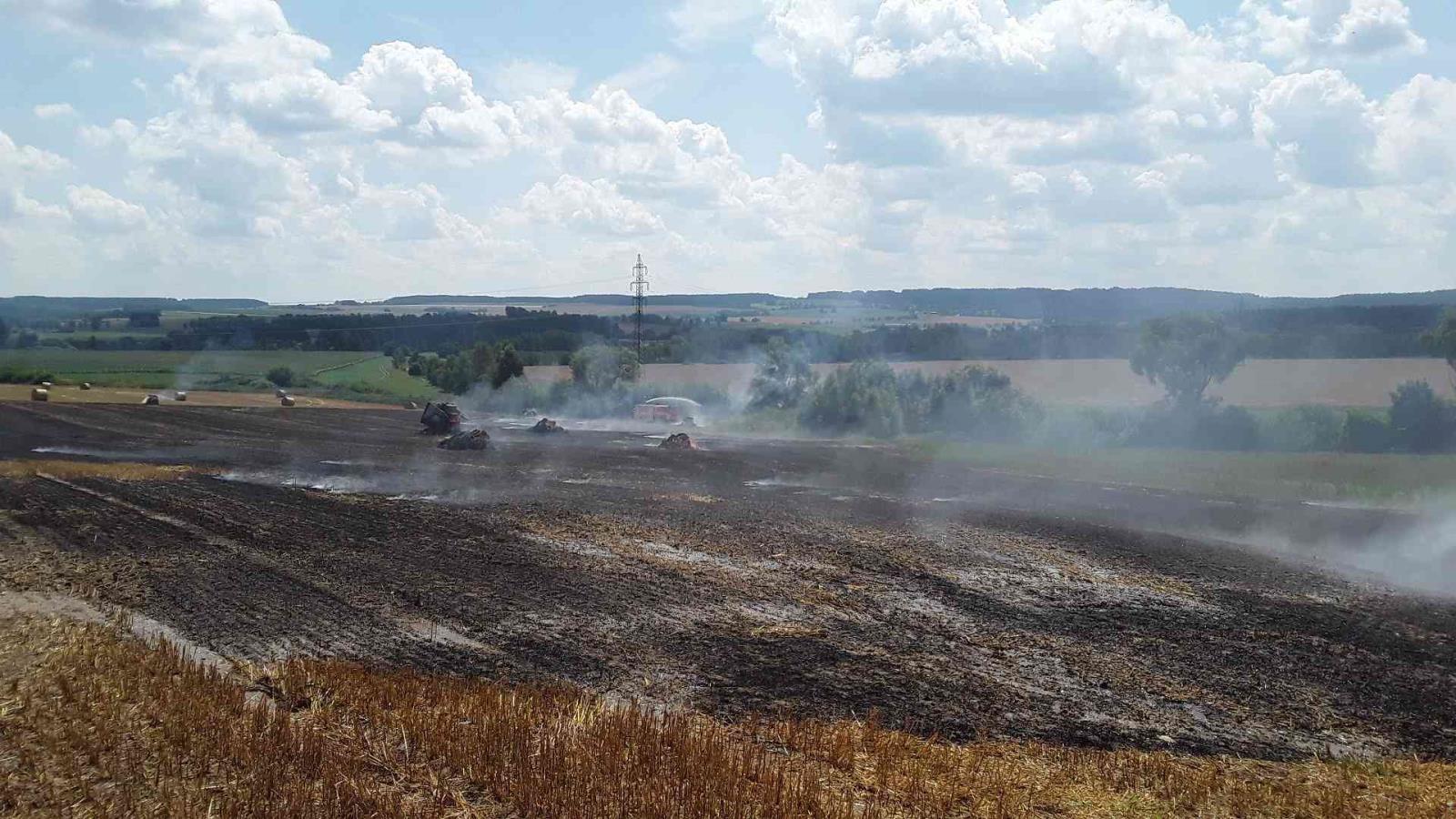 V Obratani na Pelhřimovsku hořel na poli lis a balíky slámy, na místě zasahovaly tři jednotky hasičů