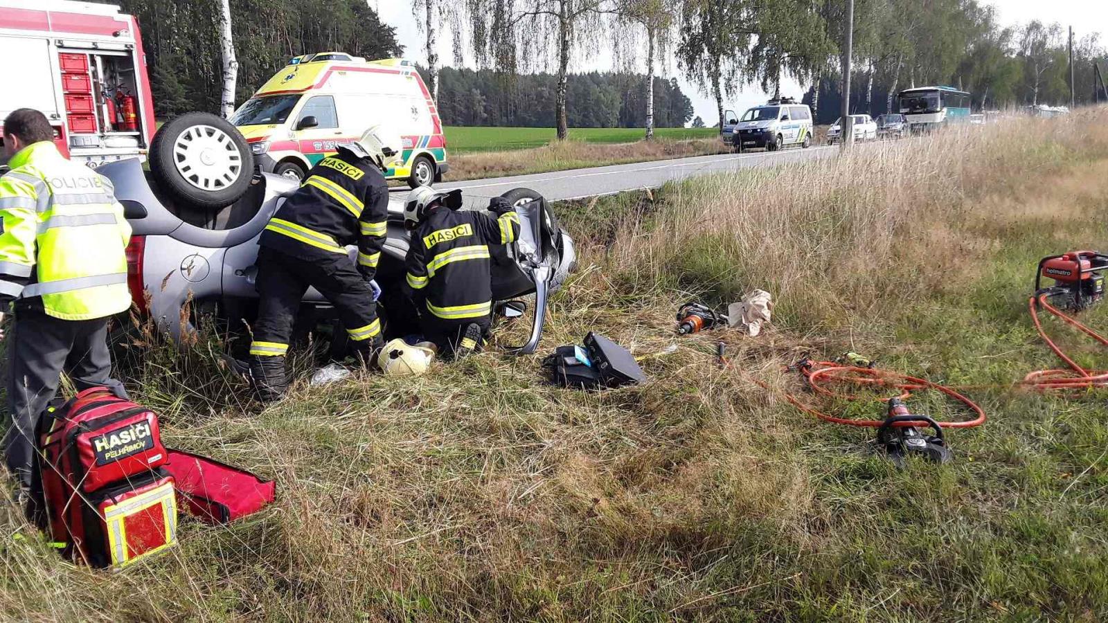 Hlášení o nehodě osobního vozidla přijala operátorka tísňové linky 112 Hasičského záchranného sboru Kraje Vysočina v 15.16 hod. Osobní vůz skončil po nehodě mimo vozovku převrácený na střeše. Uvnitř vozidla zůstal zaklíněný zraněný řidič. Hasiči jej museli z vozu vyprostit za použití hydraulického nářadí. Zraněný muž byl do nemocnice převezen sanitním vozem.