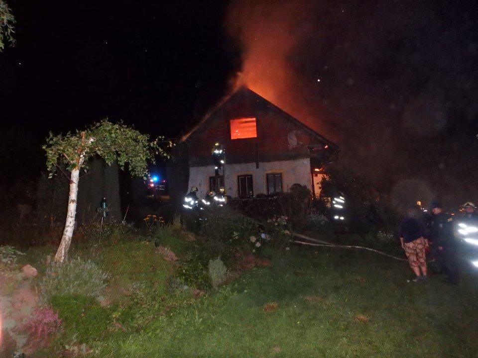 V úterý dne 29.8. krátce po desáté hodině večer byl na operační středisko Královéhradeckých hasičů oznámen požár rekreační chalupy ve Rtyni v Podkrkonoší – Veselce na Trutnovsku. Na místo události bylo povoláno celkem šest jednotek hasičů z územních odborů Trutnov, Náchod a Hradce Králové, konkrétně se jednalo o profesionální jednotky Trutnov, Náchod a Hradec Králové a jednotky sboru dobrovolných hasičů z Úpice, Červeného Kostelce a Rtyně v Podkrkonoší. Hasiči s těžkou mobilní technikou museli nejprve překonat náročný terén, protože objekt se nacházel v odlehlé lokalitě v lese na kopci. Při příjezdu na místo bylo zjištěno, že požárem je již zcela zasažena střešní konstrukce dvoupatrové chalupy a jedná se tedy o požár většího rozsahu. Dva obyvatelé domu se nezranění nacházeli mimo objekt. Pro likvidaci požáru bylo nasazeno několik vodních proudů, hasiči zasahovali v dýchacích přístrojích. Oheň zničil střešní konstrukci, zasáhl půdní prostory, okna, dveře, poškozen byl také strop v prvním nadzemním podlaží, vybavení chalupy v přízemí, dřevěný přístřešek atd. Přímá škoda způsobená požárem byla hasičským vyšetřovatelem předběžně odhadnuta na částku dva miliony korun, uchráněné hodnoty (osobní automobil, garáž, nářadí atd.) ve výši dvě stě tisíc korun. Příčinou události bylo nedbalostní jednání majitelky objektu. Od kamen na pevná paliva, které se nacházely vně budovy, došlo vlivem sálavého tepla ke vznícení palivového dříví, uskladněného v bezprostřední blízkosti kamen. Odsud se pak požár rozšířil na střešní konstrukci přístavku a střechu chalupy. Na místě zůstávala až do středečního rána místní jednotka hasičů, která zajišťovala dohled nad požářištěm. Zdroj: Text: mjr. Mgr. Ondřej Sezima Foto: HZS Královéhradeckého kraje
