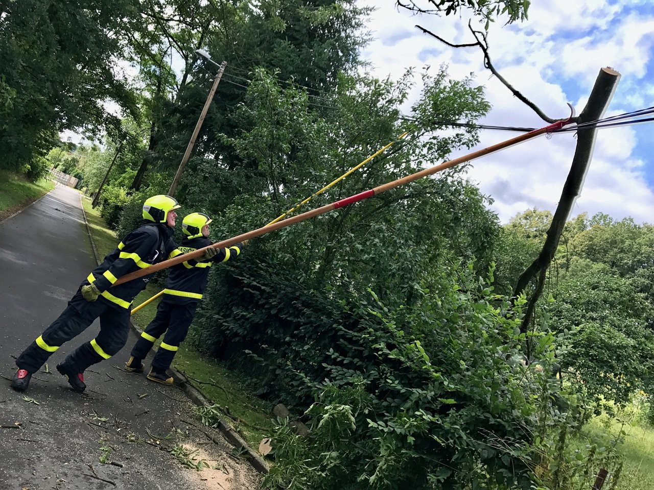 Během pátečního, 11.8.2017, odpoledne zasahovali hasiči u více než dvou stovek událostí. Hasiči v celém Královéhradeckém kraji měli v souvislosti s vytrvalým deštěm, bouřkami a nárazovým větrem hodně práce také během pátečního odpoledne a večera (souhrn zpracován do 20:00 hodin). Během tohoto období řešili více než dvě stovky událostí a například kolem sedmé hodiny večerní probíhalo aktuálně v jedné chvíli na území kraje okolo padesáti zásahů. Asi nejvážnější byla situace v obci Bohuslavice na Náchodsku, kde se kolem půl šesté odpoledne prohnala větrná smršť, která poškodila velké množství střech domů (některé střechy domů jsou zcela stržené), poničila stromy, ale také třeba autobusové zastávky a veřejné budovy. Aktuální odhad (20:00 hodin) řídícího důstojníka hasičů hovoří až o třetině z celkového počtu domů v obci, které byly vichřicí poškozeny. Podle současných informací naštěstí při vichřici nebyl nikdo zraněn a pro občany není nutné zajistit náhradní ubytování. Přesto budou asi škody na majetku nemalé. Na místě zasahují profesionální hasiči z Dobrušky a dále jednotky sboru dobrovolných hasičů z Nového Města nad Metují a Bohuslavic. Také na dalších místech Náchodska měli hasiči plné ruce práce, například na silnici z Brzic do Prorub hasiči z Jaroměře několik hodiny odstraňovali popadané stromy a zachránili z uvízlého automobilu dvě tělesně handicapované osoby. V Novém Bydžově odstraňovali místní profesionální hasiči v rychlém sledu několik popadaných stromů v půl páté odpoledne. Bouře poté postupovala směrem na Hradec Králové a kolem šesté už podobné události řešily například místní jednotky sboru dobrovolných hasičů v Kosičkách, Plačicích či Lochenicích. Také na Rychnovsku se hasiči nezastavili. Už po poledni zasahovali na kraji lesního porostu v Kostelci nad Orlicí, několik stromů zde popadalo a hrozily i pády dalších. Na místo se dostavil pracovník správy lesů a hasiči po dohodě s ním asistovali při uzavírání celé oblasti pro veřejnost. V půl šesté odpoledne najel vlak v Petrovicích do stromu spadlého v kolejišti. V té době se ve vlaku nacházelo asi padesát cestujících, nikdo z nich nebyl zraněn. Hasiči z Třebechovic pod Orebem odstranili popadané stromy v okolí trati a zpod lokomotivy. V Adamově na Trutnovsku spadl strom před projíždějící sanitní vůz, ale místním občanů se podařilo kmen odstranit ještě před příjezdem hasičů a sanitka tak mohla projet. Před šestou hodinou odpoledne spadl strom na stojící linkový autobus v Radči u Úpice. Hasiči strom odřezali a odstranili, při události nebyl nikdo zraněn. Na Trutnovsku zasahovalo také mnoho jednotek sboru dobrovolných hasičů například Hajnice, Batňovice, Libňatov, Rudník-Arnultovice a další. Asi nejklidnější byla v průběhu pátku situace na Jičínsku, kde hasiči vyjížděli k popadaným stromů a větvím spíše výjimečně. Aktuální počasí, četnost výjezdů a náročná koordinace záchranných a likvidačních prací kladou vysoké nároky na fyzickou i psychickou připravenost všech zasahujících profesionálních a dobrovolných hasičů, ale také operátorů na tísňové lince 112, operačních důstojníků a všech dalších, kteří jsou do řešení událostí zapojeni. Zdroj : mjr. Mgr. Ondřej Sezima (HZS Královéhradeckého kraje) Foto: HZS Královéhradeckého kraje