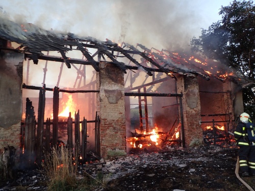 Požár velké stodoly v Píšti se stroji se škodou čtvrt milionu korun