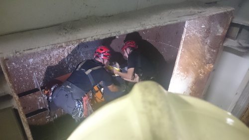 Profesionální hasiči (HZS MSK) z Karviné, včetně specializované lezecké skupiny, zachraňovali ve čtvrtek 3.8.2017 dopoledne v průmyslovém areálu v Karviné-Dolech zraněného pracovníka externí firmy, který opravoval absorbér odsíření a propadl lešením. Po zhruba osmimetrovém pádu se zachytil na železném roštu. Operační středisko hasičů bylo o nehodě informováno ve středu před půl desátou dopolední. Do karvinské části Doly vyjela jednotka Hasičského záchranného sboru Moravskoslezského kraje (HZS MSK) dvěma vozidly, včetně její lezecké skupiny s kvalitním vybavením. Po příjezdu na místo události se hasiči-lezci ihned vydali nahoru po venkovním schodišti do výšky zhruba deseti metrů, kde po průlezu úzkým otvorem ve stěně absorbéru navázali kontakt s postiženým, ležícím na roštu půldruhého metru pod úrovní vstupu. Montér byl při vědomí, avšak s bolestivým zraněním v oblasti dolních končetin. Hasiči-lezci jej na místě pádu stabilizovali, zafixovali mu krční páteř a zraněné nohy. S pomocí jejich kolegů byl postižený vytažen z prostoru absorbéru a snesen po schodišti k vozidlu ZZS MSK, kde byl předán do péče zdravotníků. Zd roj: Petr Kůdela, tiskový mluvčí - HZS Moravskoslezského kraje Foto: HZS Moravskoslezského kraje Zdroj: Zdeněk Hošák | HZS Olomouckého kraje, tiskový mluvčí Foto: HZS Olomouckého kraje