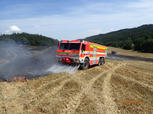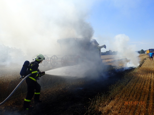 Teplota vzduchu přesahující třicet stupňů je pro hasiče likvidující požár extrémní. Hasiči si nemohou ulevit sundáním zásahového obleku, rukavic nebo těžkých bot. Pod těžkou výstrojí může lehce dojít k přehřátí organismu. Takovéto podmínky měli jihočeští hasiči dnes u třech požárů. Především u požáru v Blatné bylo velmi důležitým úkolem velitele zásahu hlídat, jak dlouho jsou hasiči nasazeni. Bylo nutné hasiče častěji střídat, na místo bylo proto vysláno více jednotek, než by u tohoto požáru bylo standardní. 31.7. 2017 po poledni (13:15 hodin) vyjeli profesionální hasiči ze stanice Blatná a dobrovolní hasiči obcí Blatná, Bělčice a Sedlice do Böhmovy ulice v Blatné, kde byl ohlášen požár nízké budovy. Hasiči průzkumem zjistili, že se jedná o opuštěnou kolnu a bývalou truhlářskou dílnu. Uvnitř nikdo nebyl. Jednotky okamžitě zahájily hasební práce a přibližně po patnácti minutách měly požár pod kontrolou. Velitel zásahu nahlásil lokalizaci požáru. Následovalo dohašování, v průběhu kterého si velitel zásahu vyžádal další jednotky., A to z důvodu teplot, které přesahovaly 30 stupňů. Proto do Blatné vyjeli dobrovolní hasiči obcí Záboří a Lnáře. Operační středisko vzhledem k počtu vyslaných jednotek vyhlásilo krátce před půl třetí druhý stupeň požárního poplachu. Před 15. hodinou si velitel zásahu vyžádal ze strakonické stanice termokameru pro vyhledání skrytých ohnisek. Zatím není požár stále zcela zlikvidován, stále probíhá dohašování. Požářiště bude vzhledem k tomu, že je zde hodně pilin a obdobného materiálu, monitorováno po celou noc. Vyšetřovatel společně s policisty stanovil výši předběžné škody na 950 000,- (750 000,- na budově a 200 000,- na poničených oknech blízkého bytového domu). Příčina vzniku požáru je v šetření, které bude následovat v úterý 1. srpna. Profesionální jednotka ze stanice Soběslav a jednotky SDH obcí Veselí nad Lužnicí a Dolní Bukovsko spolupracovaly od 14:35 hodin u Horusicu požáru pole. Požár zasáhnul přibližně 50 m2. Hasiči požár zvládli přibližně za půl hodiny. Při požáru nevznikla žádná škoda. Další požár, který propuknul na Strakonicku, byl požár kombajnu na poli. Kombajn začal hořet z dosud neznámé příčiny ve Strakonicích, části obce V Častavírně. Informaci o něm hasiči obdrželi na tísňovou linku v 14:57 hodin. Operační důstojníci na místo vyslali jednotku strakonických profesionálních hasičů a jednotky SDH obcí Štěkeň a Strakonice. Jednalo se o požár staršího kombajnu, který hasiči dostali již po několika minutách pod kontrolu a to i přesto, že se z motorové části dále rozšířil na strniště (přibližně 40 x 10 metrů). Úplnou likvidaci požáru velitel zásahu nahlásil za další čtvrthodinu. Výše vzniklé škody činí 15 000,-, příčinou vzniku požáru byla technická závada na motoru. Zdroj: Vendula Matějů –tisková mluvčí Jihočeský kraj Foto: HZS Jihočeský kraj