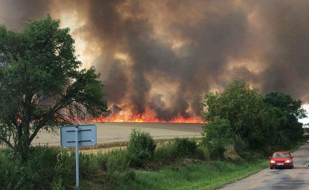 Rozsáhlý požár pole s pšenicí hasilo 16 jednotek hasičů s 24 cisternami a letadlo