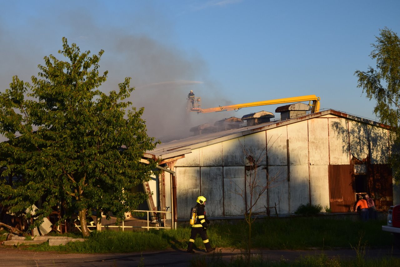 Druhý stupeň poplachu při požáru haly ve Volenicích na Příbramsku