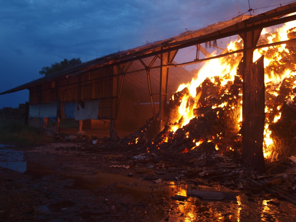 Úmyslně založený požár skladovacích hal a pole nedaleko Jičína se obešla bez zranění
