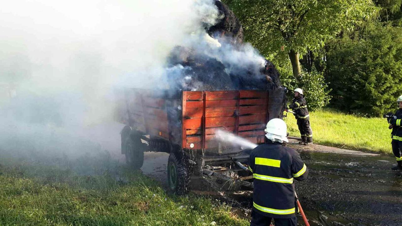 Hasiči na Pardubicku likvidovali požár chatky i traktoru se senem