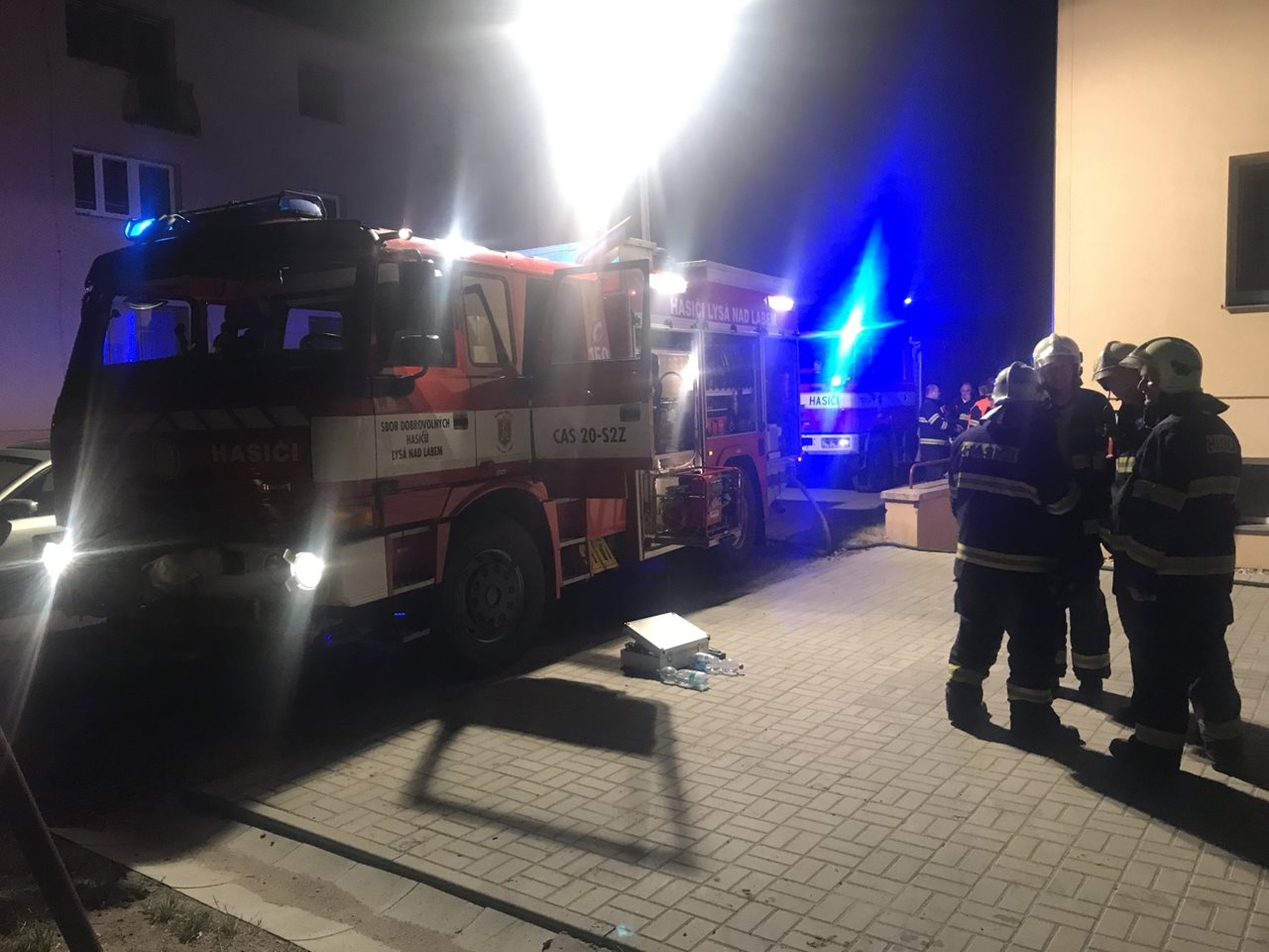 Ve středu 14. června třináct minut po dvaadvacáté hodině byl na linku tísňového volání Hasičského záchranného sboru Středočeského kraje oznámen požár v bytovém domě v Lysé nad Labem na Nymbursku. Operační důstojník k místu události vyslal profesionální hasiče ze stanic Benátky nad Jizerou a Nymburk a jednotky sboru dobrovolných hasičů z Lysé nad Labem a Milovic. Jako první k události dorazila místní dobrovolná jednotka, která přijela už po pěti minutách od ohlášení požáru. Při průzkumu bylo zjištěno, že hoří v bytě 2+1 ve zvýšeném přízemí třípodlažní budovy. Pod okny bytu hasiči nalezli jednu osobu, která utrpěla popáleniny a byla intoxikována kouřem, zároveň bylo podezření na možné poranění páteře. Další zraněnou osobu našli hasiči v hořícím bytě, ze kterého ji zachránili a předali do péče zdravotnické záchranné služby. V celém domě bylo včetně dětí dvanáct lidí, z nichž pět bylo evakuováno, zbylých sedm hasiči z objektu zachránili. Požár se podařilo lokalizovat asi za půl hodiny pomocí vysokotlakého proudu, pak byla celá budova odvětrána. Nejvážněji zraněnou osobu transportoval do nemocnice vrtulník letecké záchranné služby, jednu osobu odvezla sanitka a další obyvatel domu byl ošetřen na místě. Škoda vzniklá požárem byla vyčíslena na 50 tisíc korun, uchráněné hodnoty částkou 1 mil. korun. Příčina vzniku požáru je předmětem dalšího vyšetřování. nprap. Petr Svoboda oddělení IZS HZS Středočeského kraje Foto: HZS Středočeského kraje