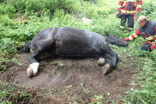Hasiči zachraňovali na Bruntálsku koně s nohou zaklesnutou v jímce