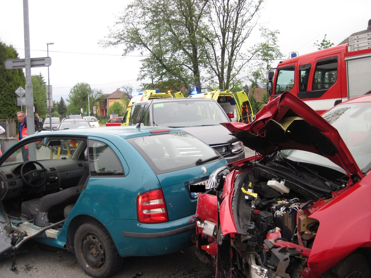 Na místě vážné dopravní nehody v Rožnově pod Radhoštěm zasahovaly dvě jednotky hasičů. V sobotu, 20.května 2017, v 17:53 hodin vyslal operační důstojník krajských hasičů jednotku profesionálních hasičů ze stanice Valašské Meziříčí a jednotku hasičů města Rožnov pod Radhoštěm na místo hlášené dopravní nehody tří osobních vozidel, ke které došlo v křižovatce ulic Kramolišov a Partyzánská. Jako první dorazili na místo rožnovští hasiči. V havarovaném vozidle zn. Škoda zůstala zaklíněna zraněná řidička. Hasiči hydraulických vyprošťovacích zařízení odstranili dveře a dělící sloupek na levé straně vozidla, zraněnou řidičku spolu se záchranáři stabilizovali a pomocí páteřové desky vytáhli z vraku. Po přeložení na vakuová nosítka ji připravili k transportu do vrtulníku, který přistál na místě události. Spolu s řidičkou bylo vrtulníkem transportováno i malé dítě, které s ženou cestovalo ve vozidle a bylo také zraněno. V druhém vozidle zn. Citroen cestoval v okamžiku nehody pouze řidič. Ten z nehody vyváznul pouze s lehčím poraněním a byl ošetřen na místě. Ve třetím vozidle zn. Volkswagen cestovaly čtyři osoby. Ty byly nezraněny. Po vyproštění a transportu zraněných do vrtulníku hasiči zajistili místo nehody, zabezpečili havarovaná vozidla proti vzniku požáru a úniku provozních kapalin. Na místě pak zůstala jednotka hasičů z Rožnova pod Radhoštěm, která po vyšetření nehody policisty dokončí nezbytné likvidační a úklidové práce. Autor: por. Bc. Libor Netopil, tiskový mluvčí HZS Zlínského kraje